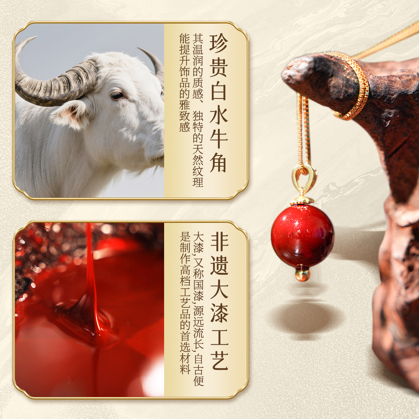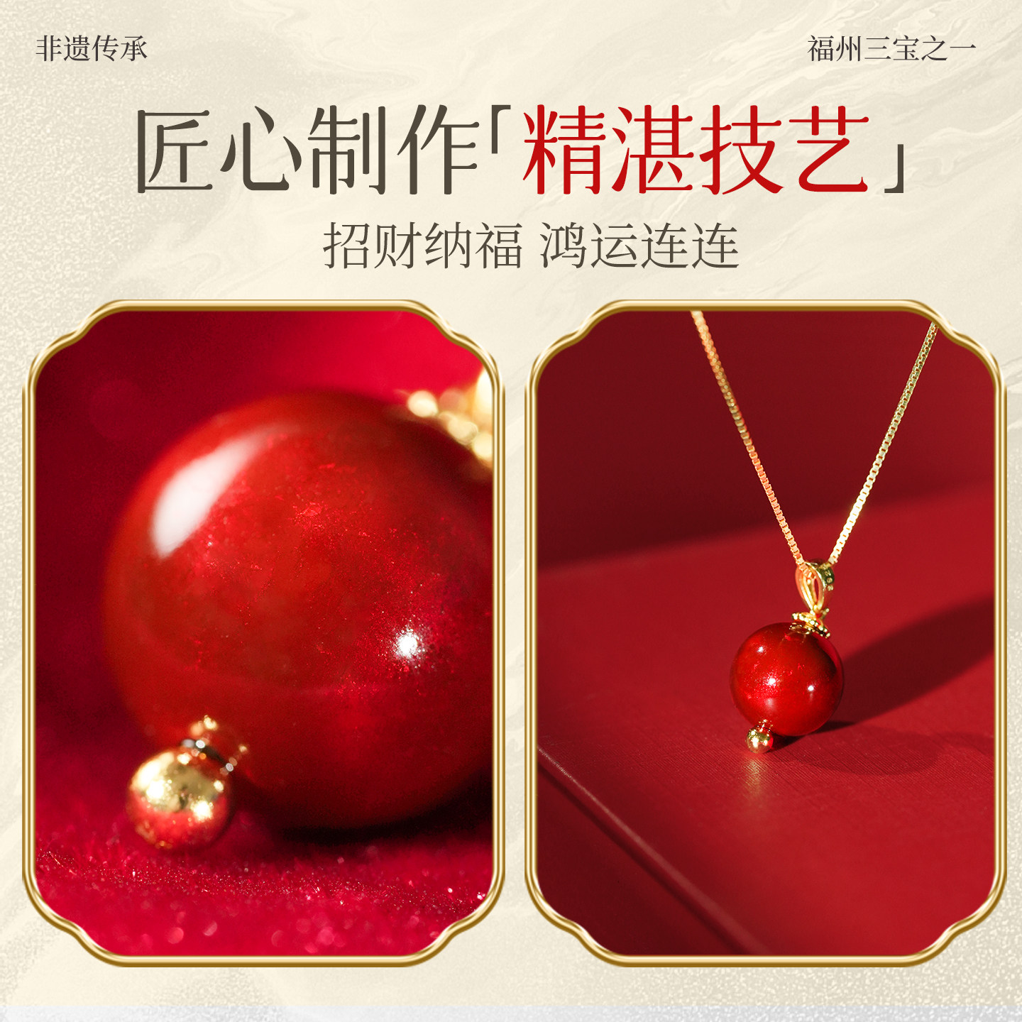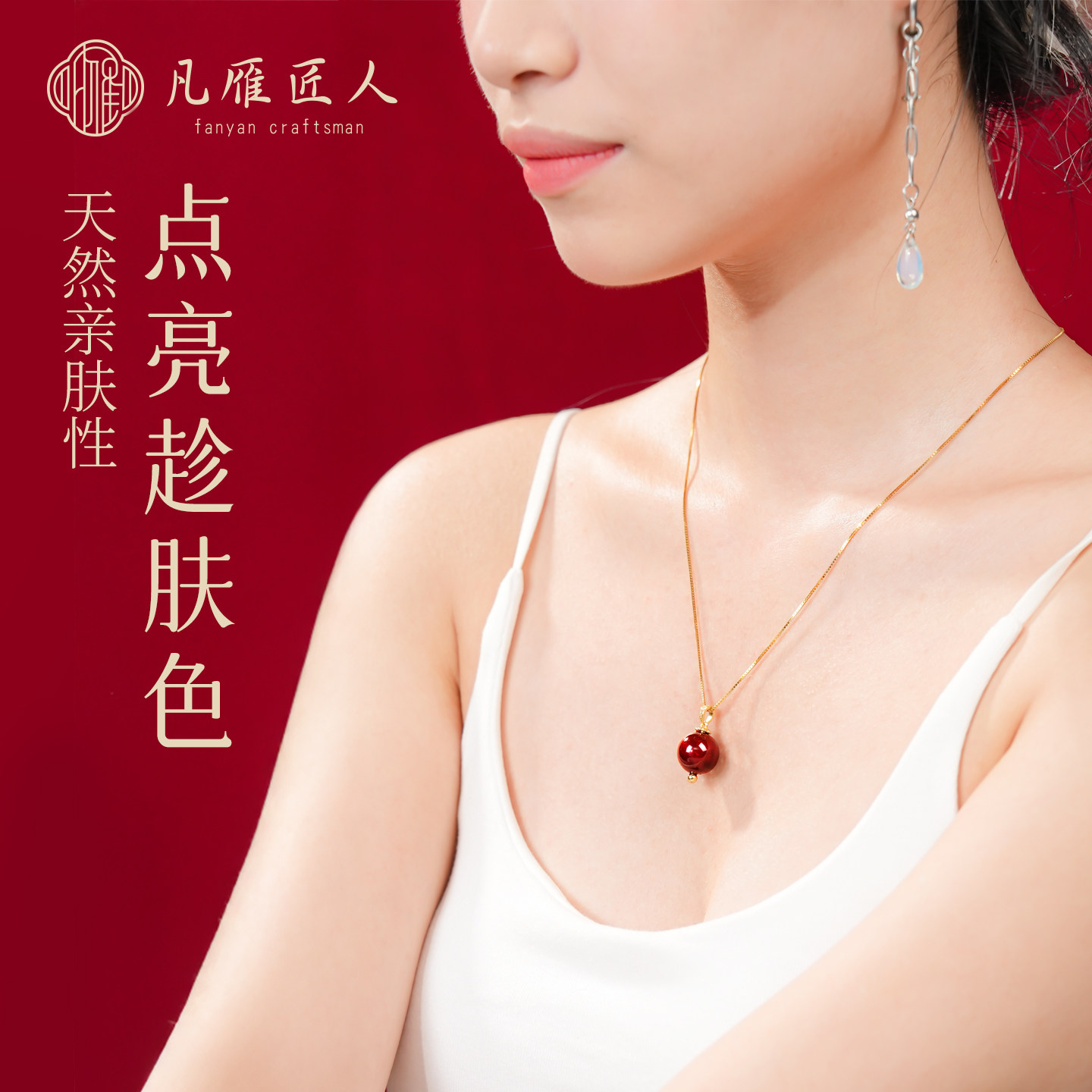凡雁匠人赤宝砂单珠项链非遗大漆女款红色吊坠配饰生日礼物送妈妈