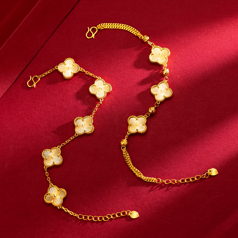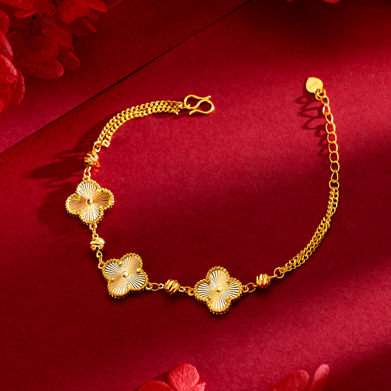 新款镭射四叶草黄金手链女金包银小众时尚仿真24K金送女朋友礼物