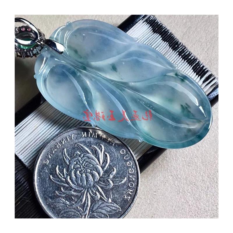 缅甸货冰种飘花翡翠色树叶子吊坠挂件玉佩玉牌男女士玉石玉石项链
