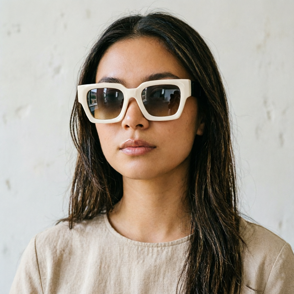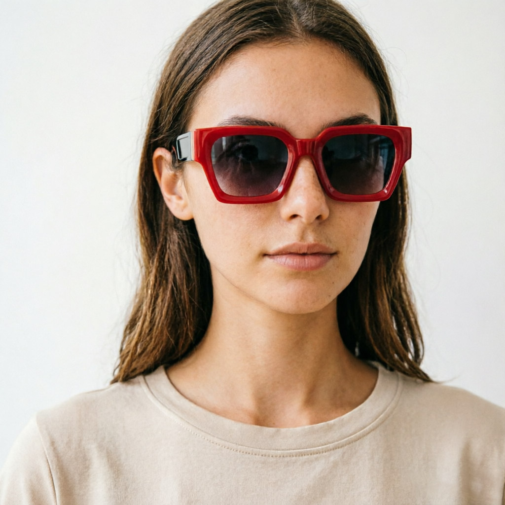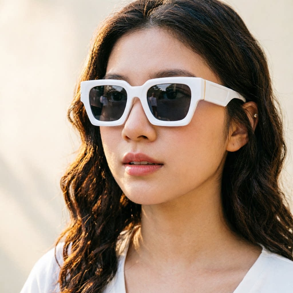 方形女士太阳镜米白时尚百搭显瘦女款墨镜防晒大红色黑色眼镜