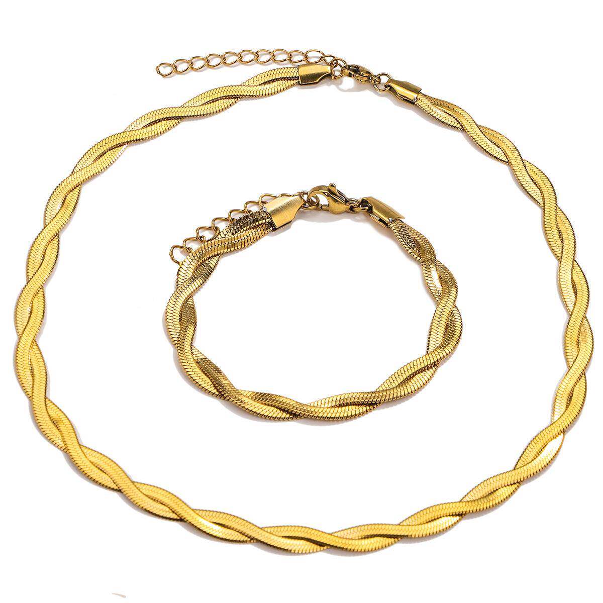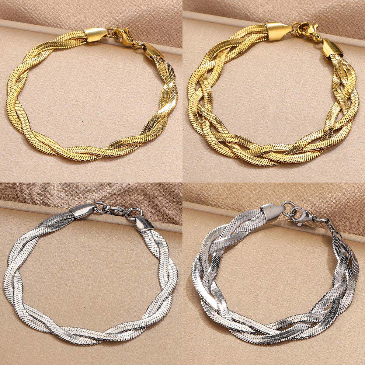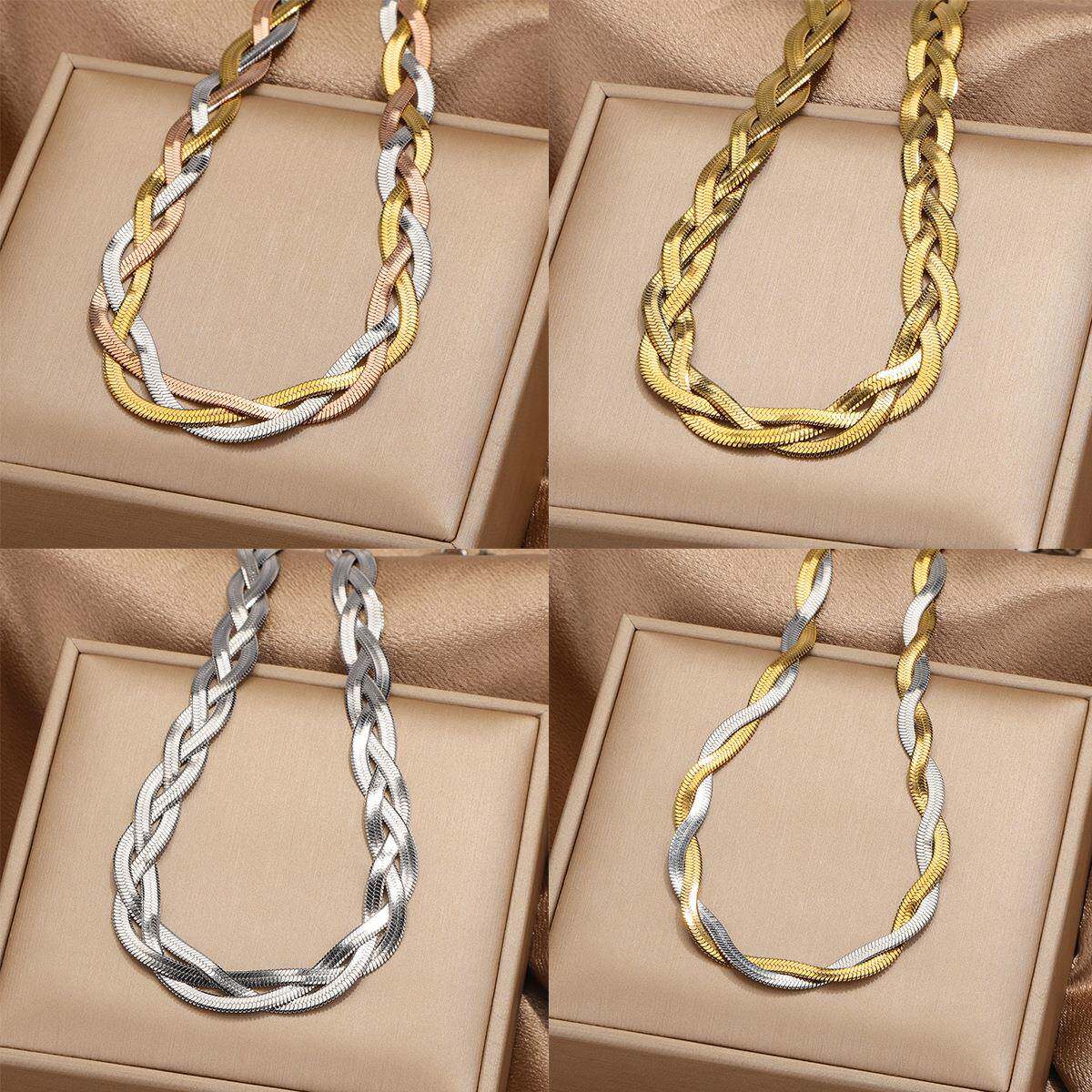 欧美个性编织保色百搭钛钢双层叠戴项链女ins素链蛇骨链刀片链锁