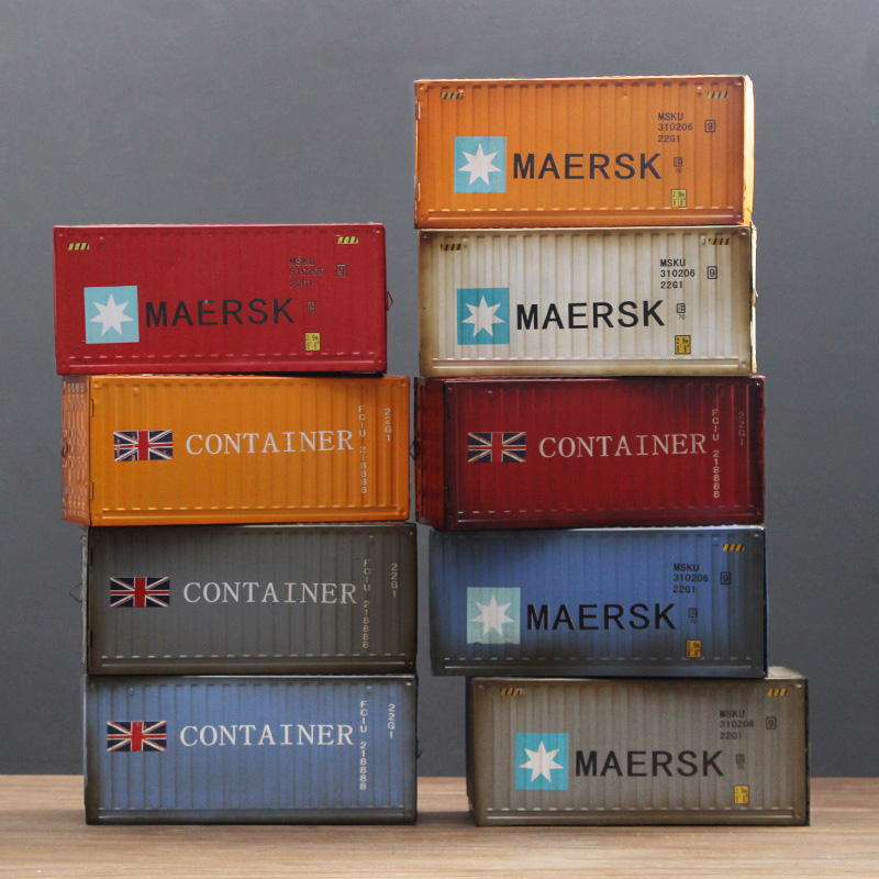 美式复古工业风创意金p属铁皮集装箱纸巾盒酒吧家居客厅装饰品摆