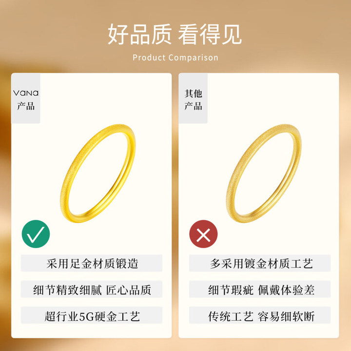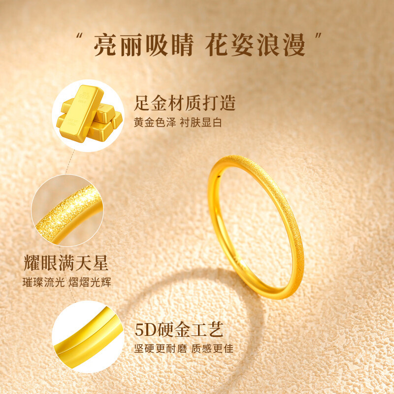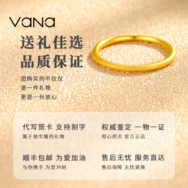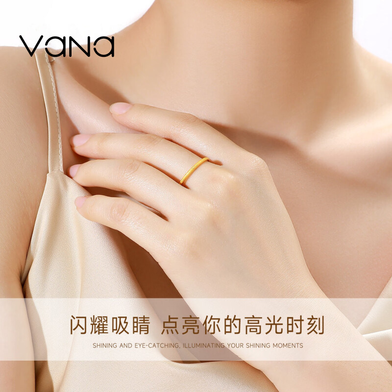 vana满天星黄金戒指女款足金999素圈闭口砂面指环24K纯金正品手饰