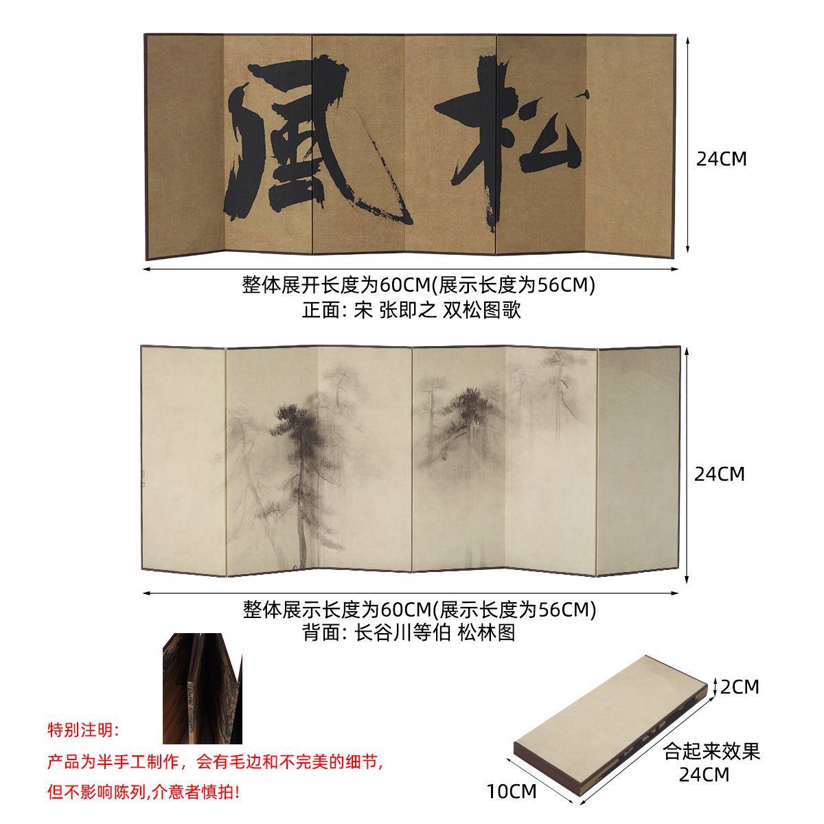 中式国画松林图装饰品小屏风茶室会所文玩桌面摆件
