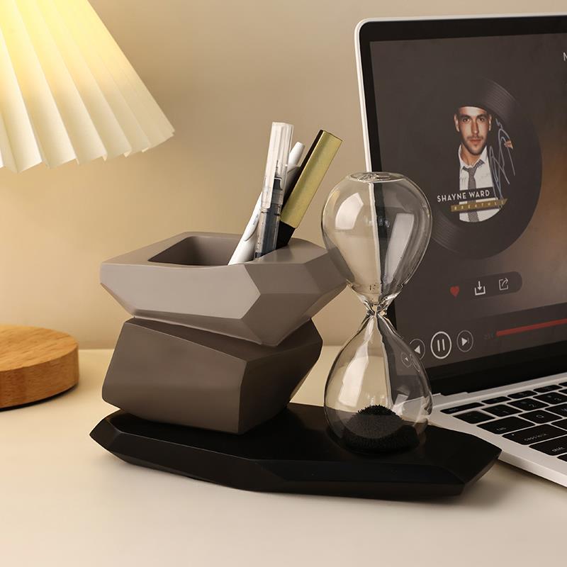 时来运转磁吸沙漏摆件办公室桌面创意工位解压笔筒送老师毕业礼物