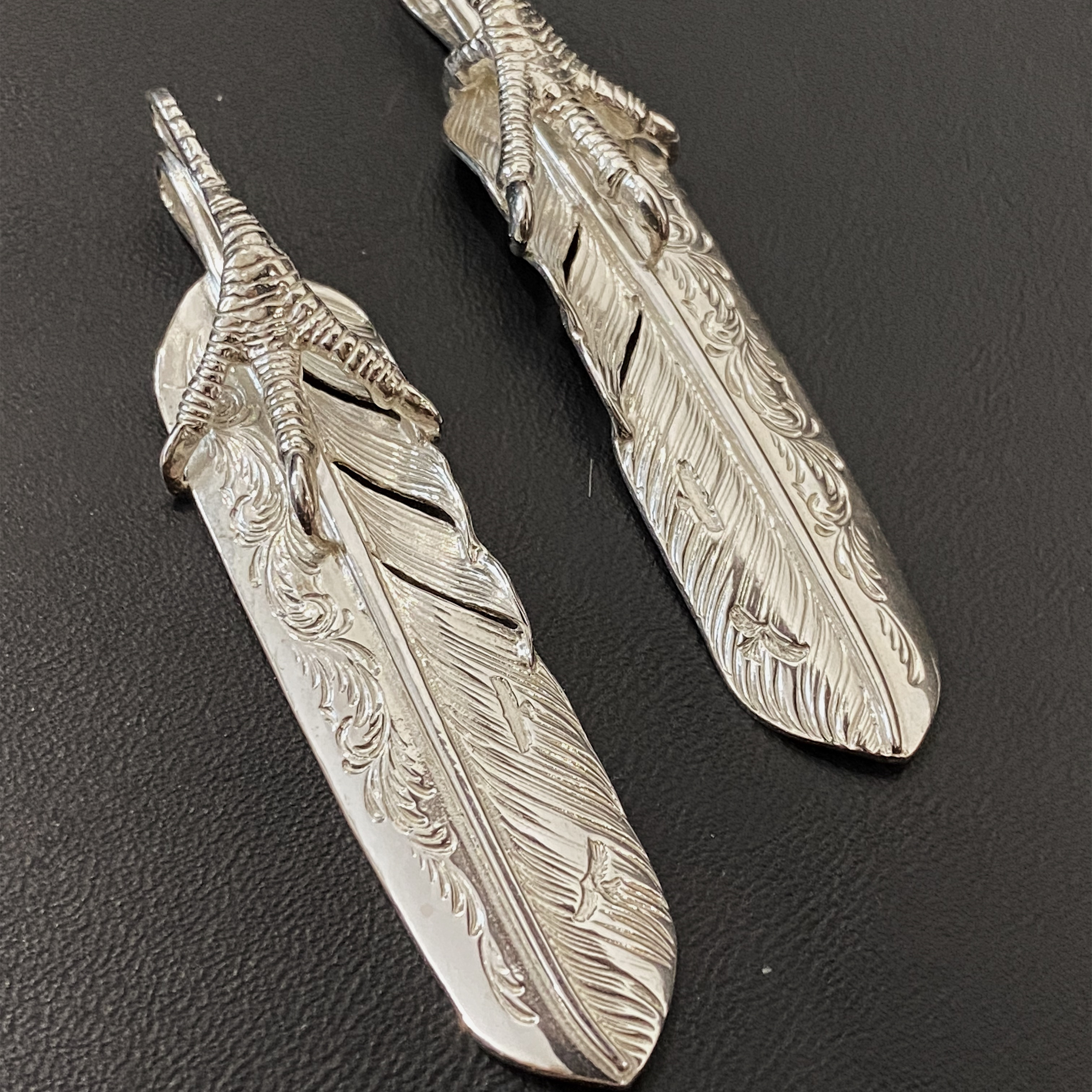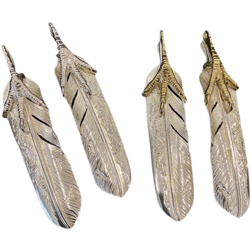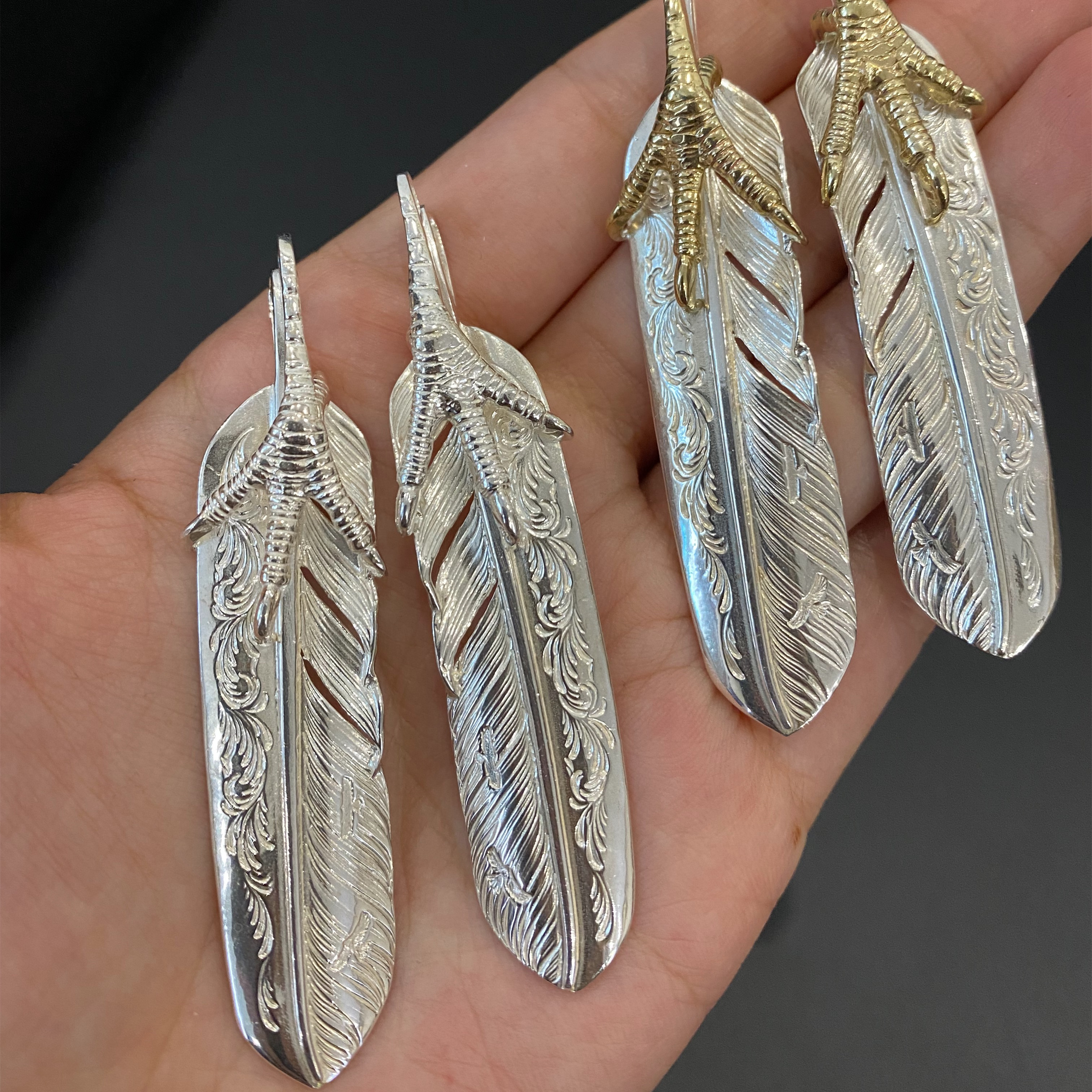 不同银匠 日潮925纯银手工雕刻唐草花飞鹰爪羽毛吊坠印第安嘻哈男