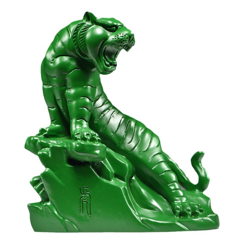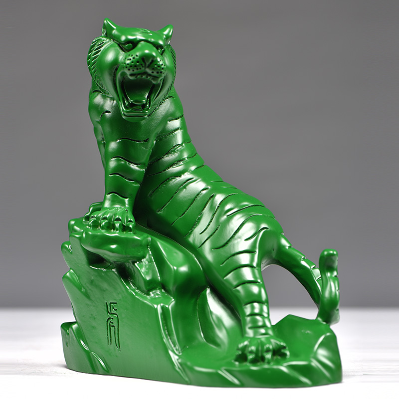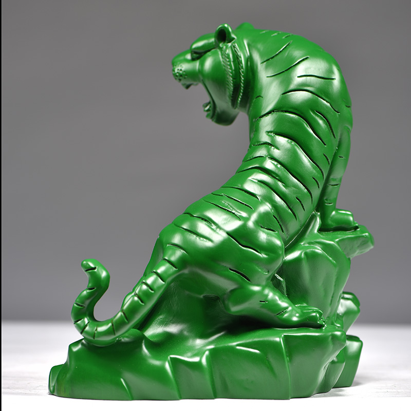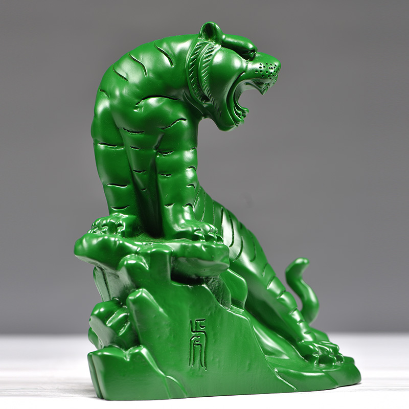 绿色木虎摆件实木雕刻木质上山虎生肖动物办公室装饰品摆设工艺品