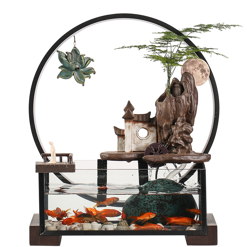 流水生财摆件创意景观循环水鱼缸客厅办公室招财装饰开业乔迁礼品