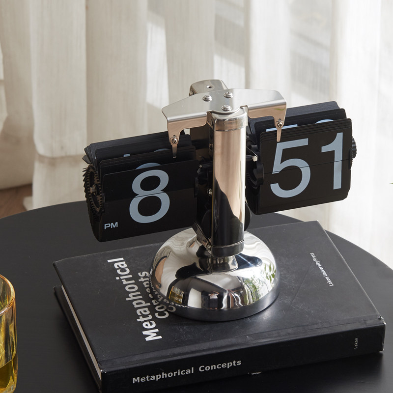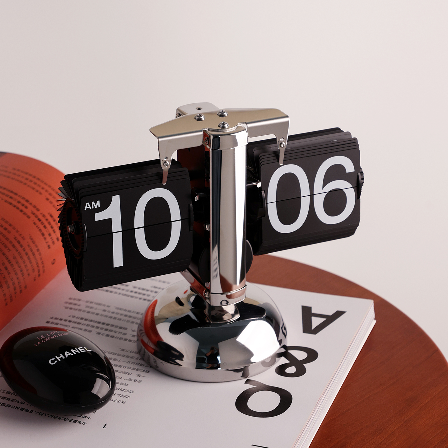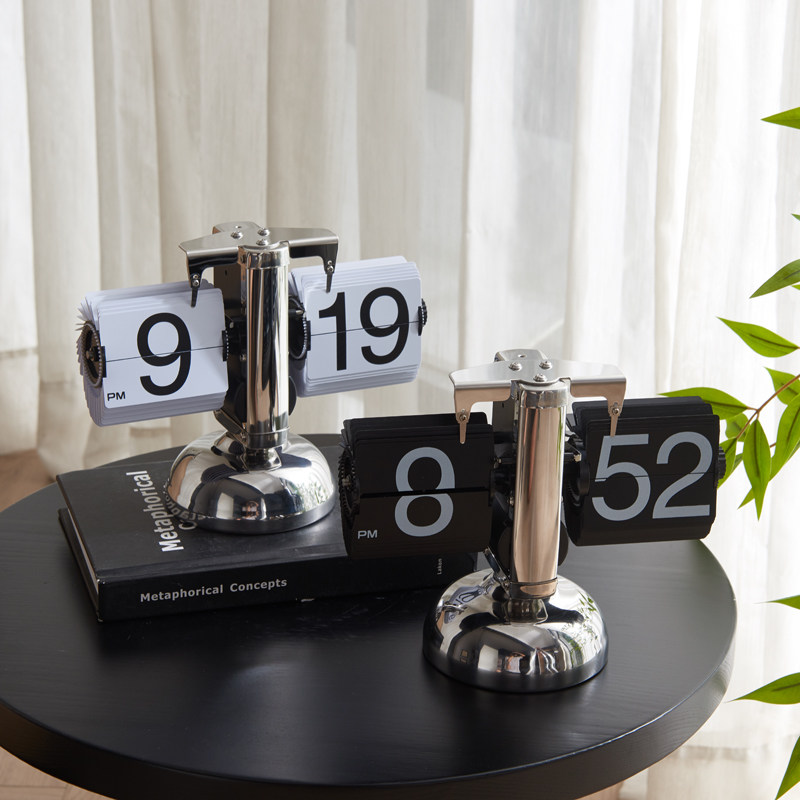 创意复古机械时钟桌面摆件台式翻页钟客厅办公室极简个性装饰座钟