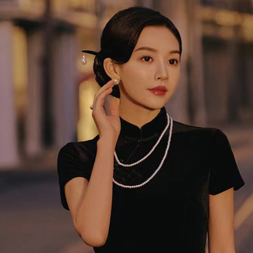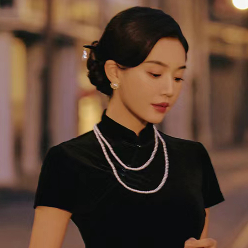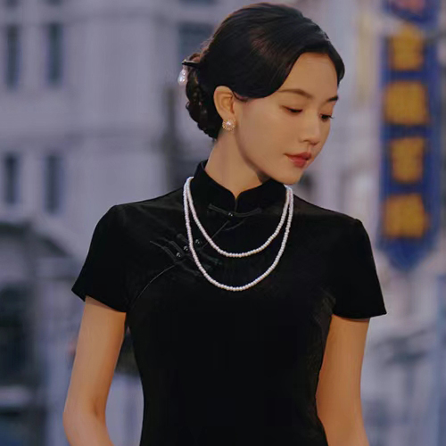 多层珍珠项链配旗袍配饰品女款锁骨链双层毛衣链子中长款颈链080