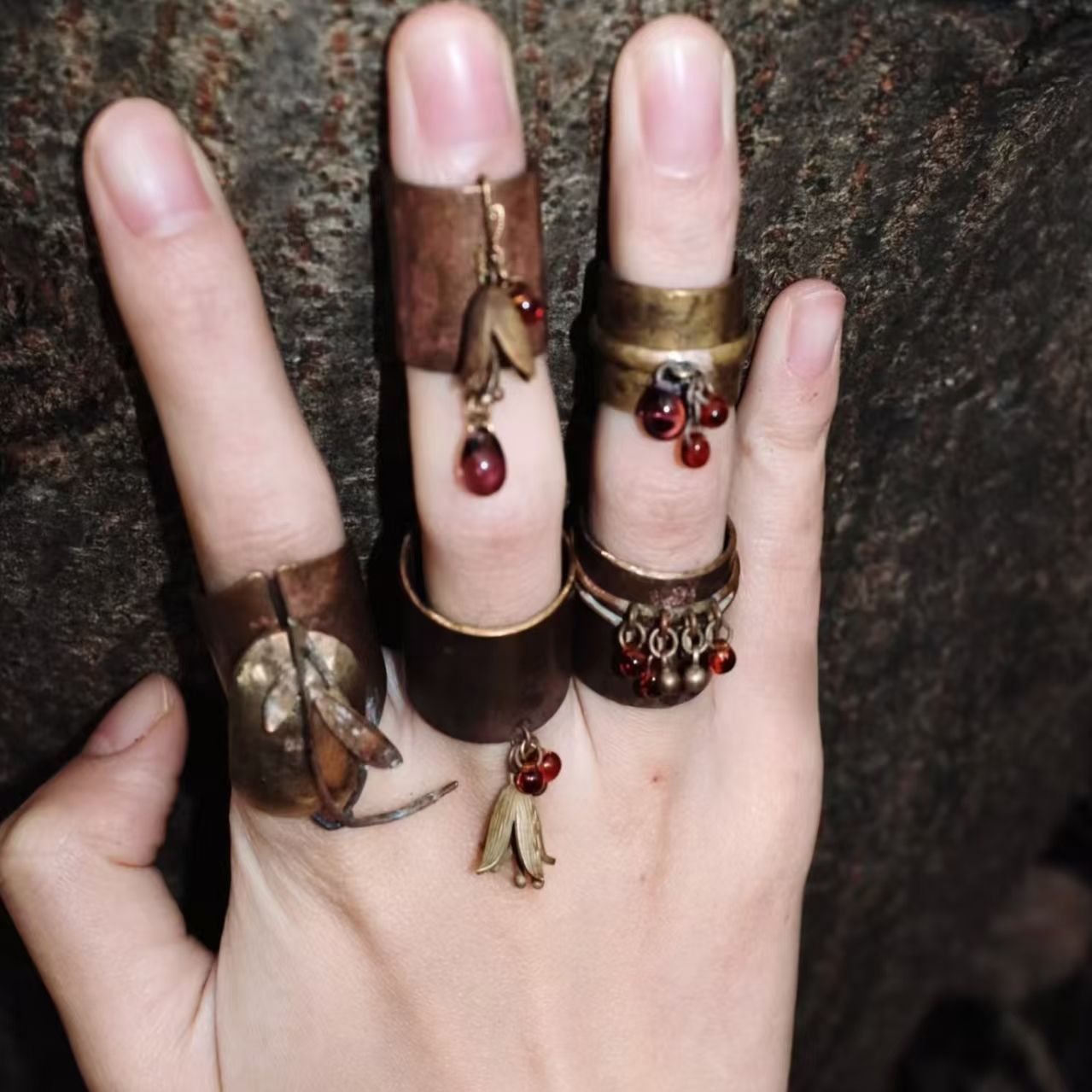 祭司的指环 做旧流苏树叶戒指复古小众设计食指戒可调节开口指环