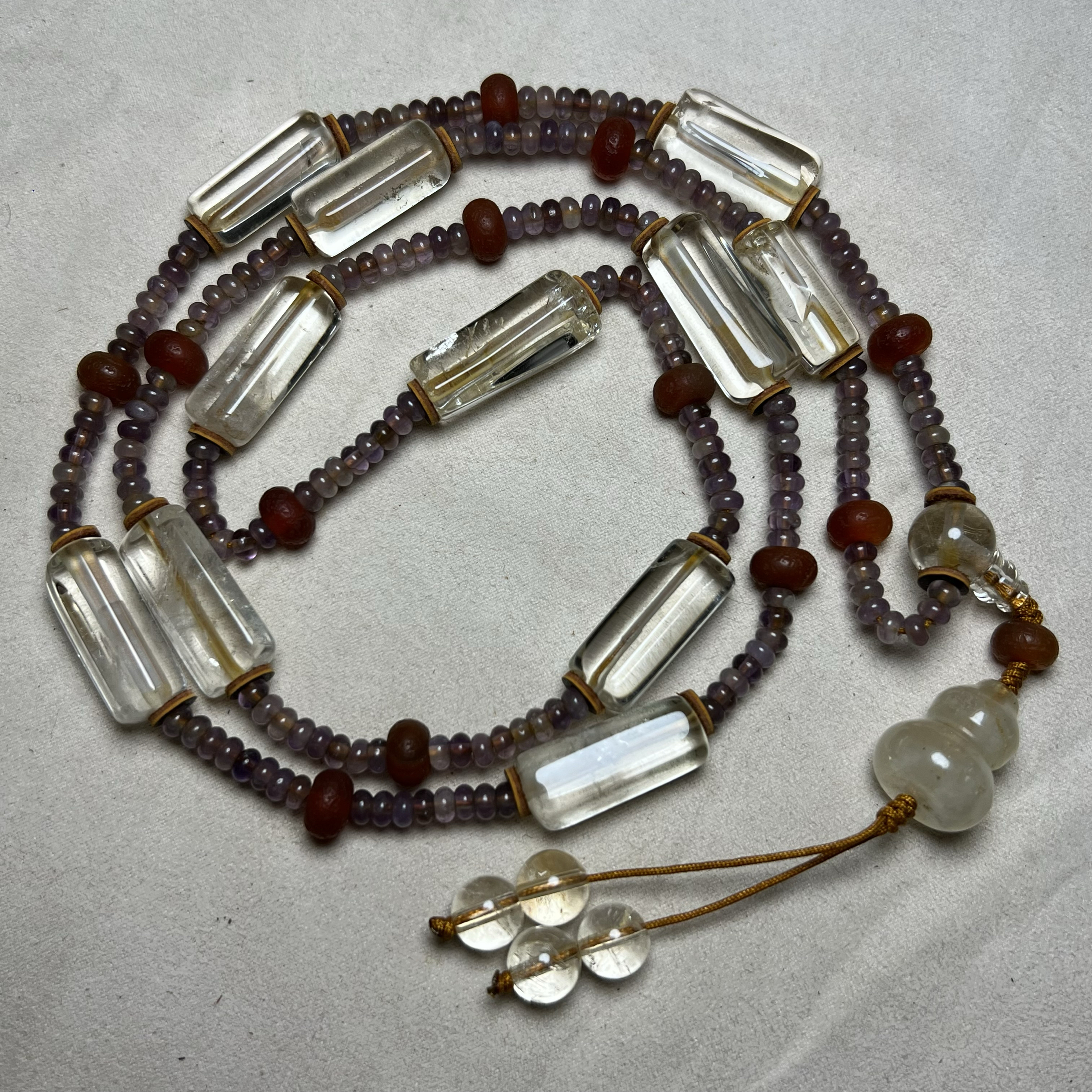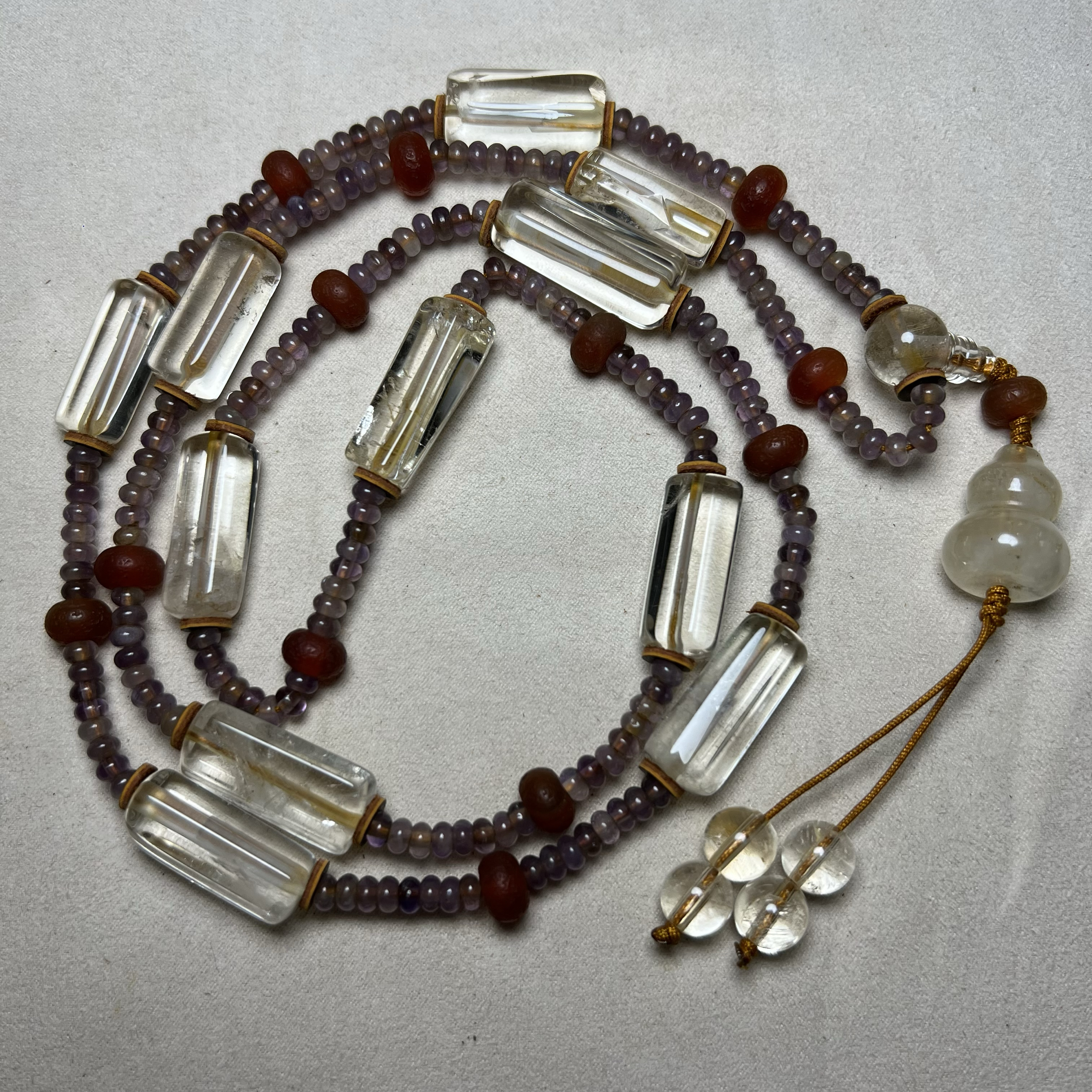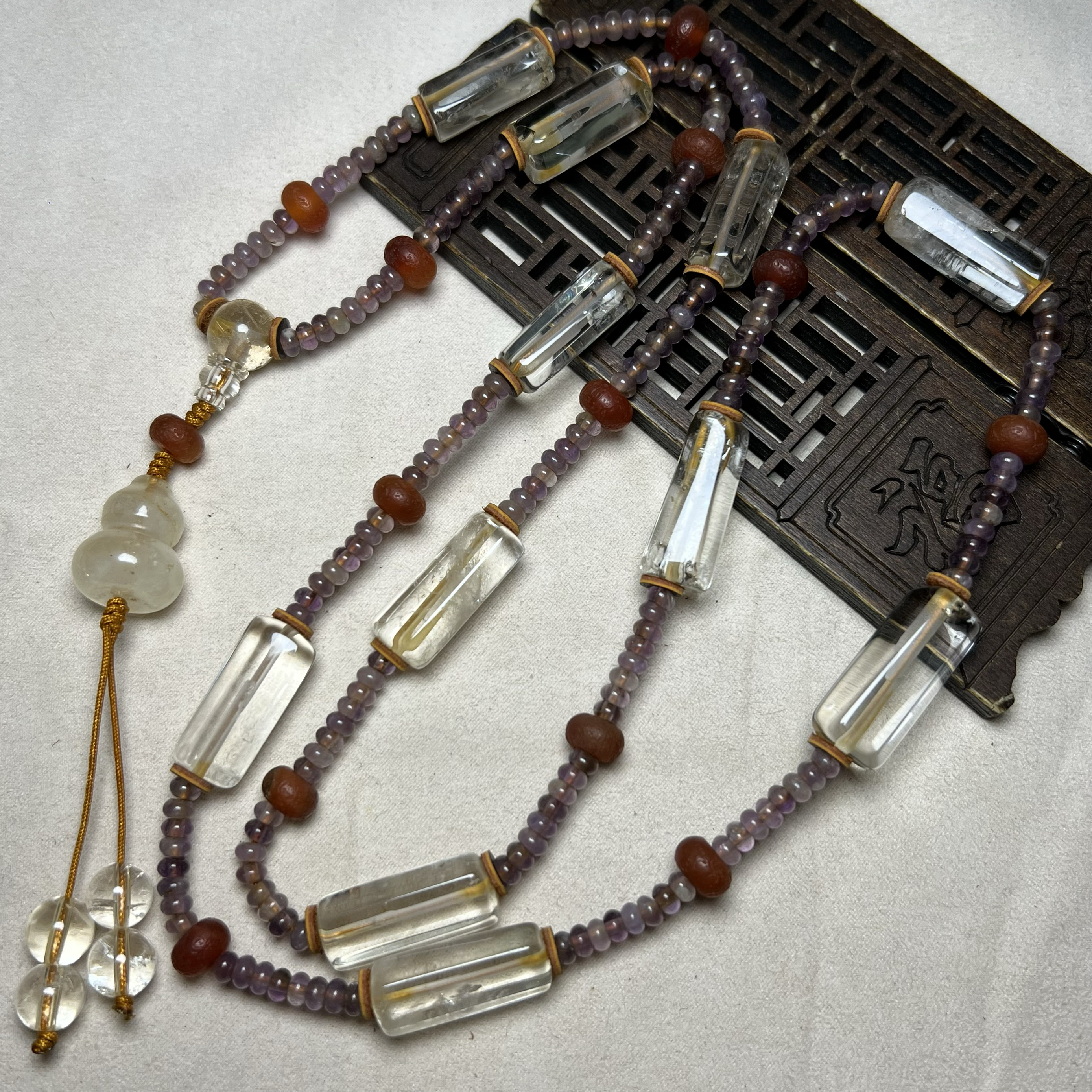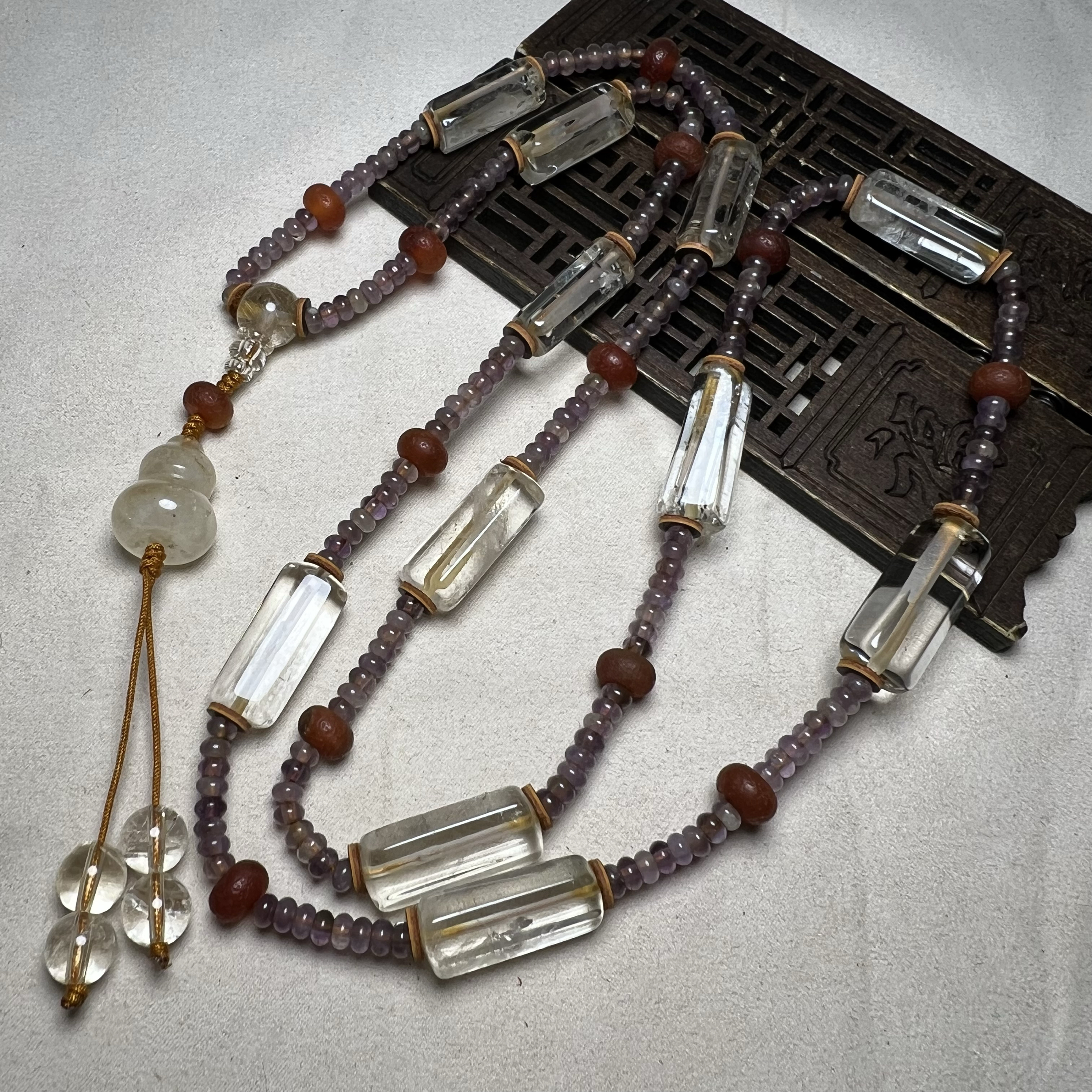 尼泊尔老水晶多棱珠白水晶勒子水晶长管多宝老珠子散珠项链配珠
