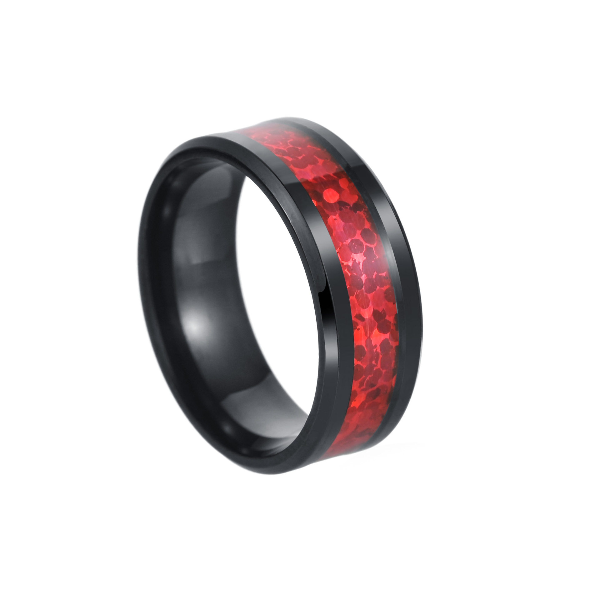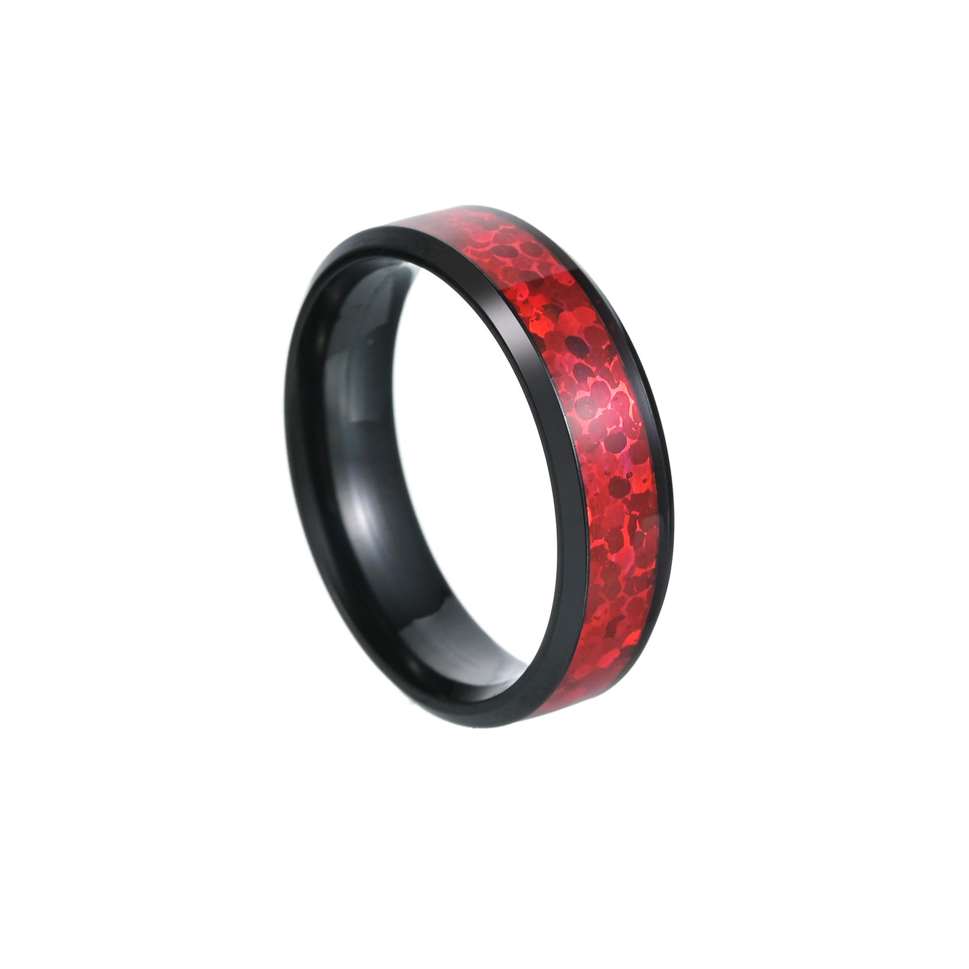 2023亚马逊新款欧美流行情侣戒指钛钢指环红色仿澳宝饰品真空电镀