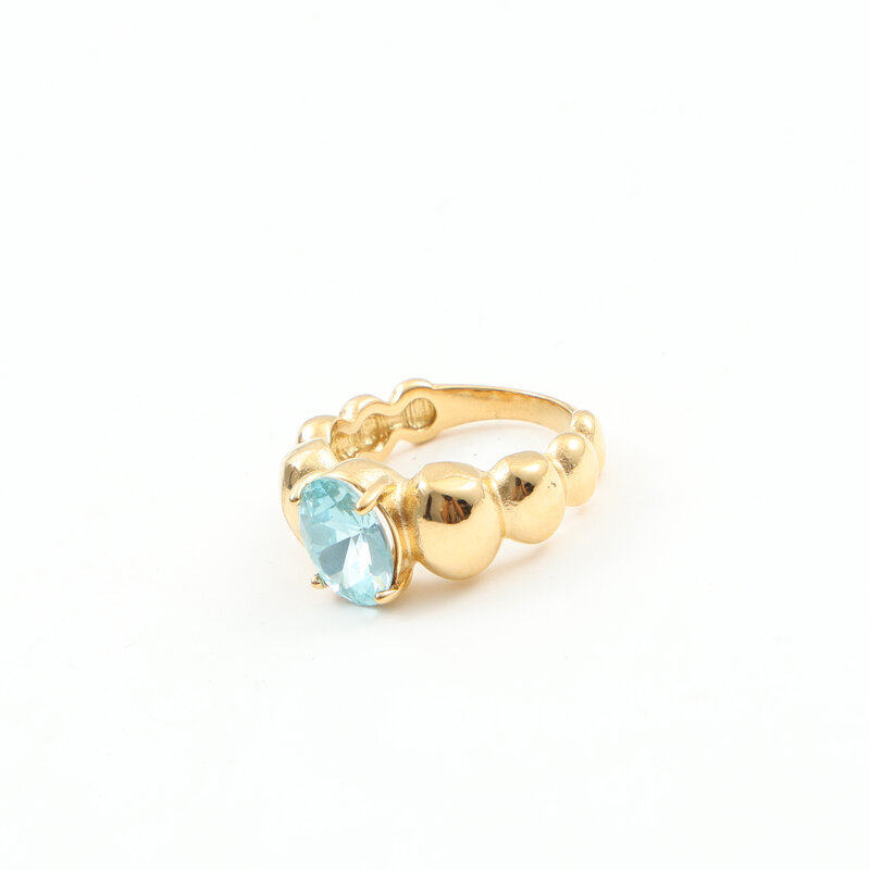 日系topwhit浅蓝色 鹅蛋锆石 戒指 钛钢电镀18k金