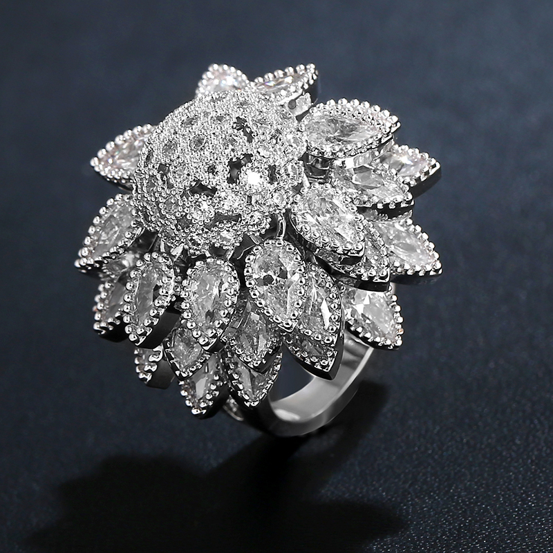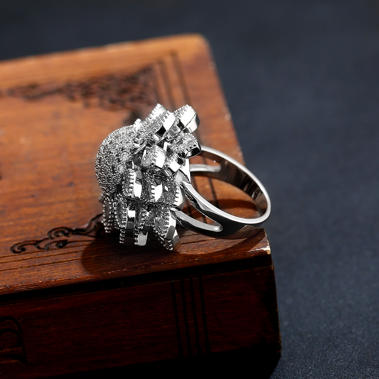 欧美风水晶夸张女士大戒指蹦迪个性会转动的太阳花网红潮人指环