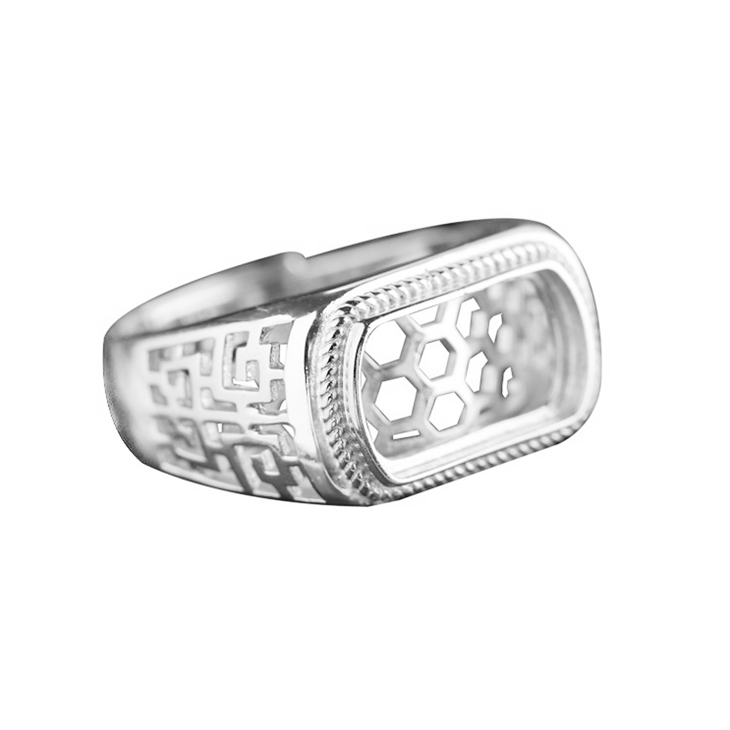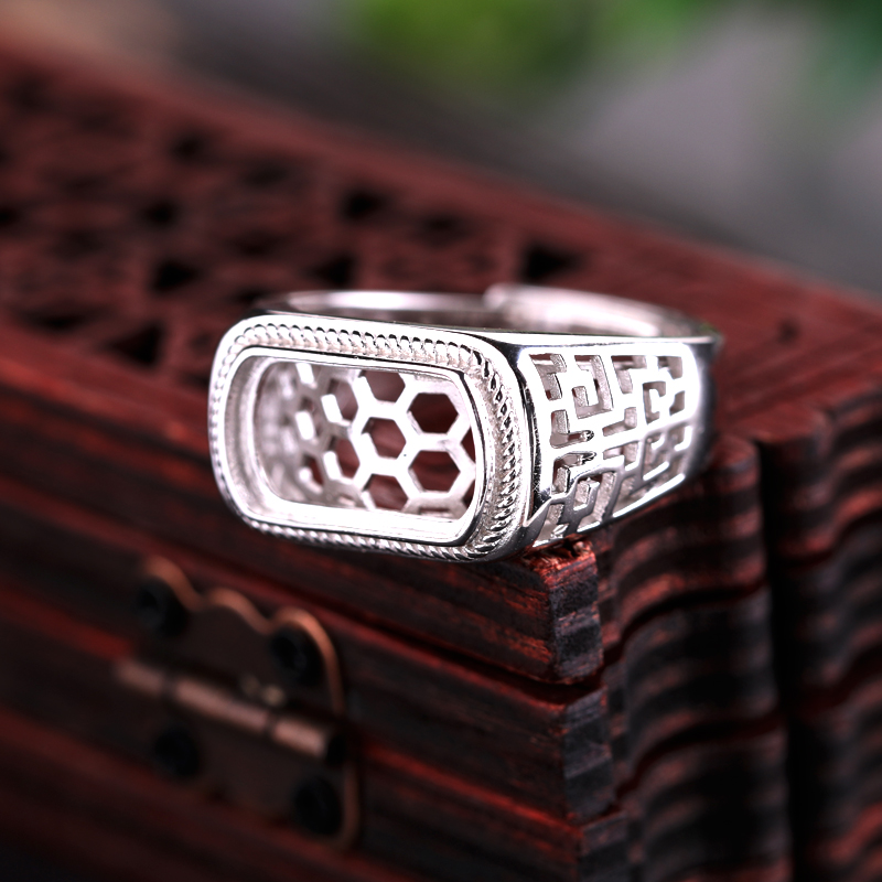 马鞍托S925纯银戒指空托镶嵌蜜蜡绿松石墨玉翡翠马鞍戒面戒托8*14