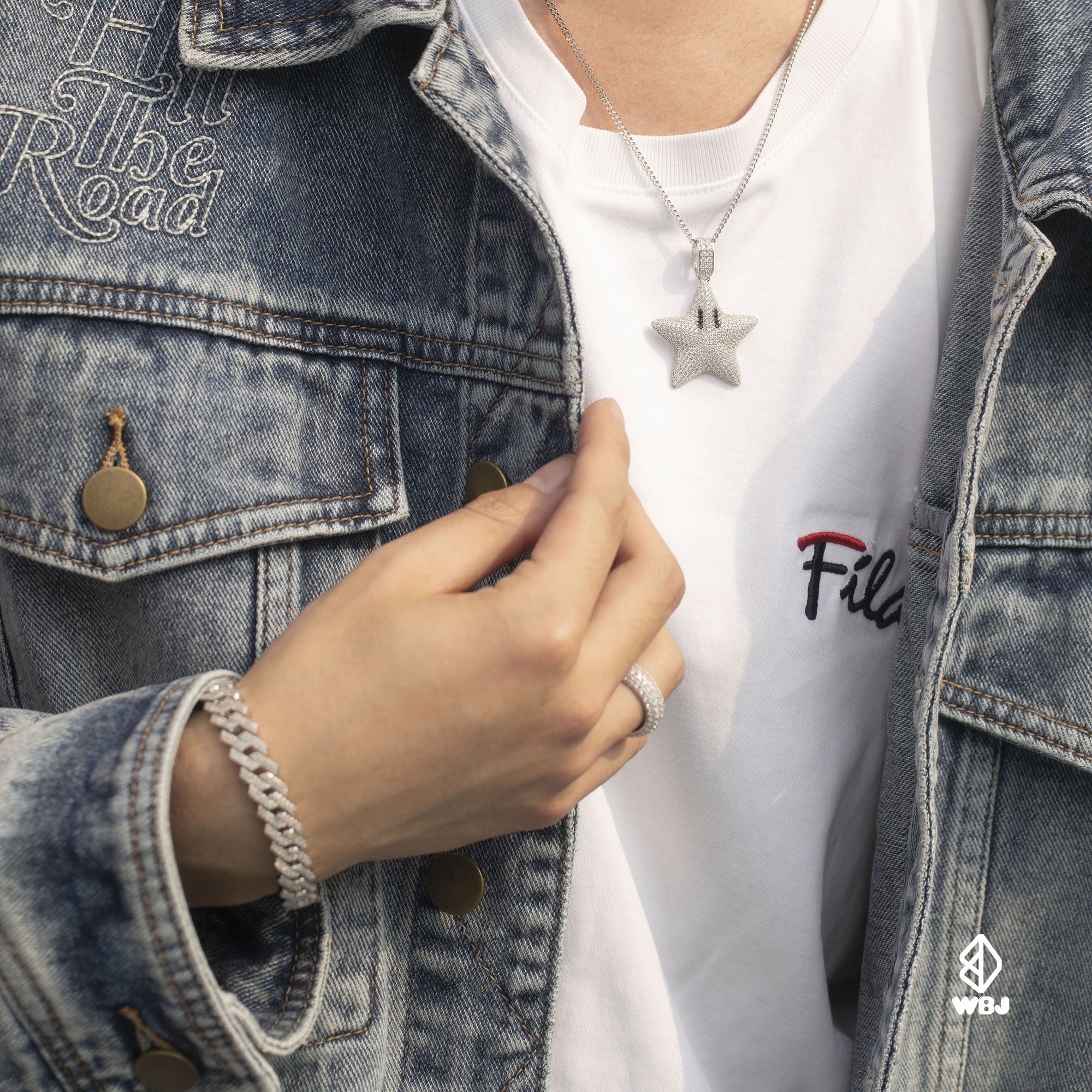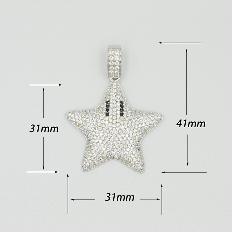 WBJ定制珠宝 无敌星 满镶嵌吊坠 s925纯银镀金Mario star