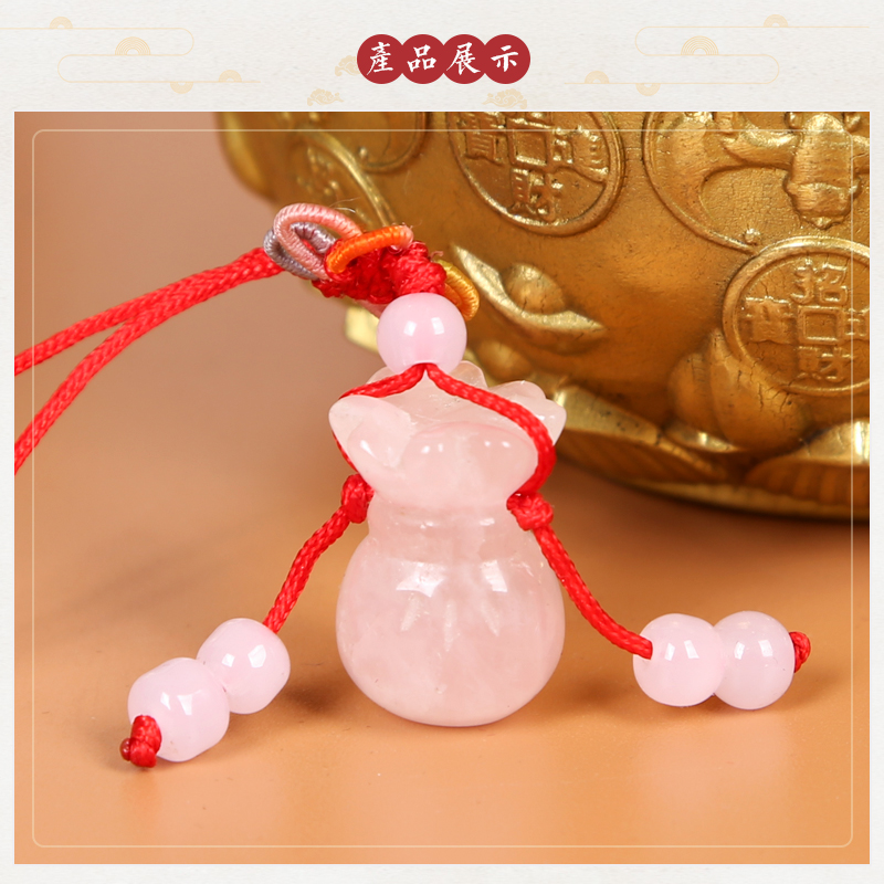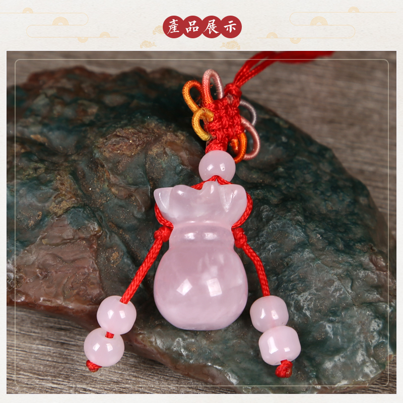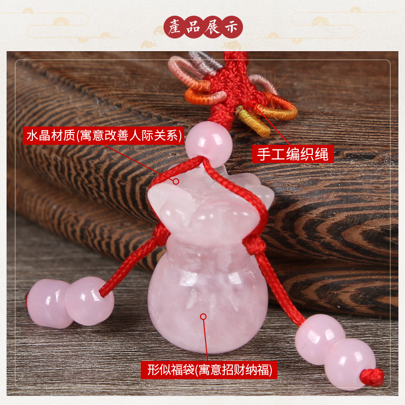 鼎风阁天然粉水晶小福袋挂件招财纳福手机链随身包包挂饰中式装饰