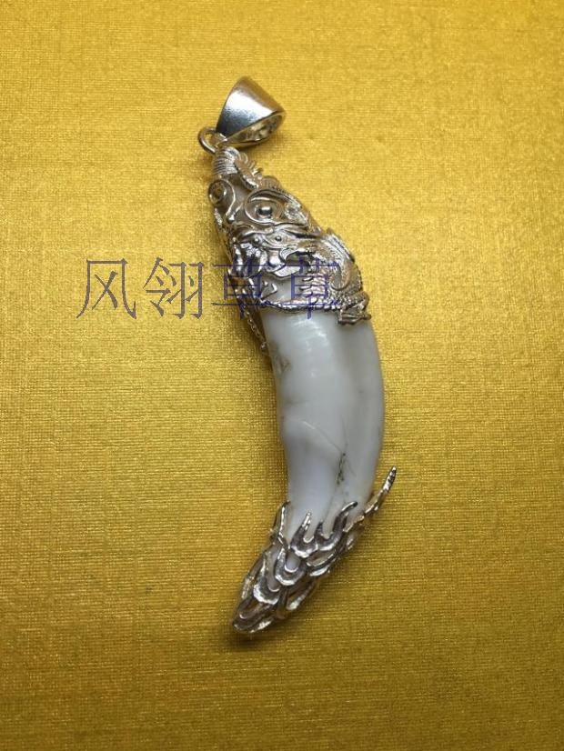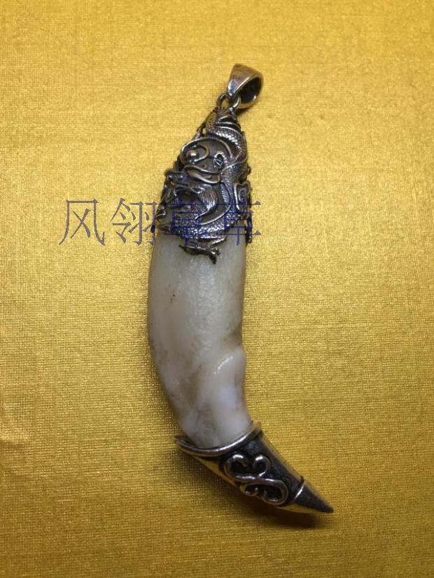 双面龙纯银狗牙项链包银镶银吊坠男项链狗牙饰品藏獒牙护身符
