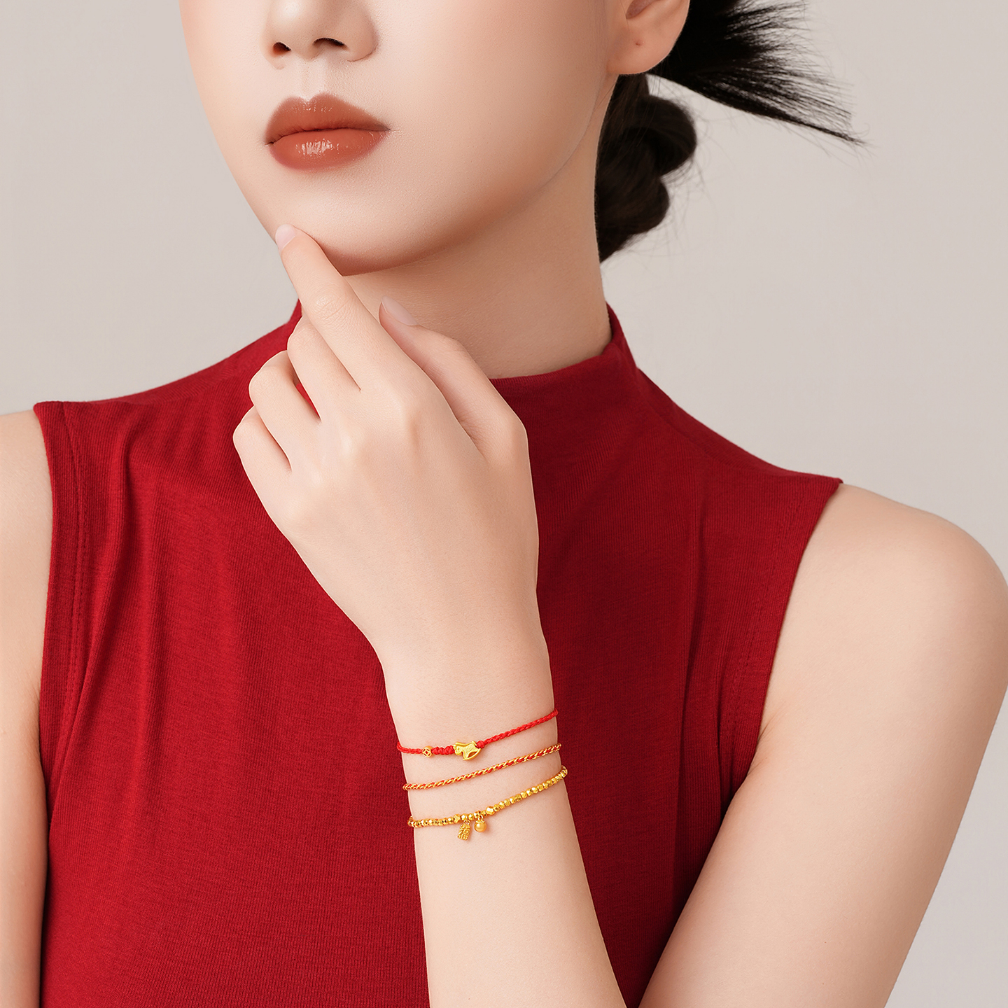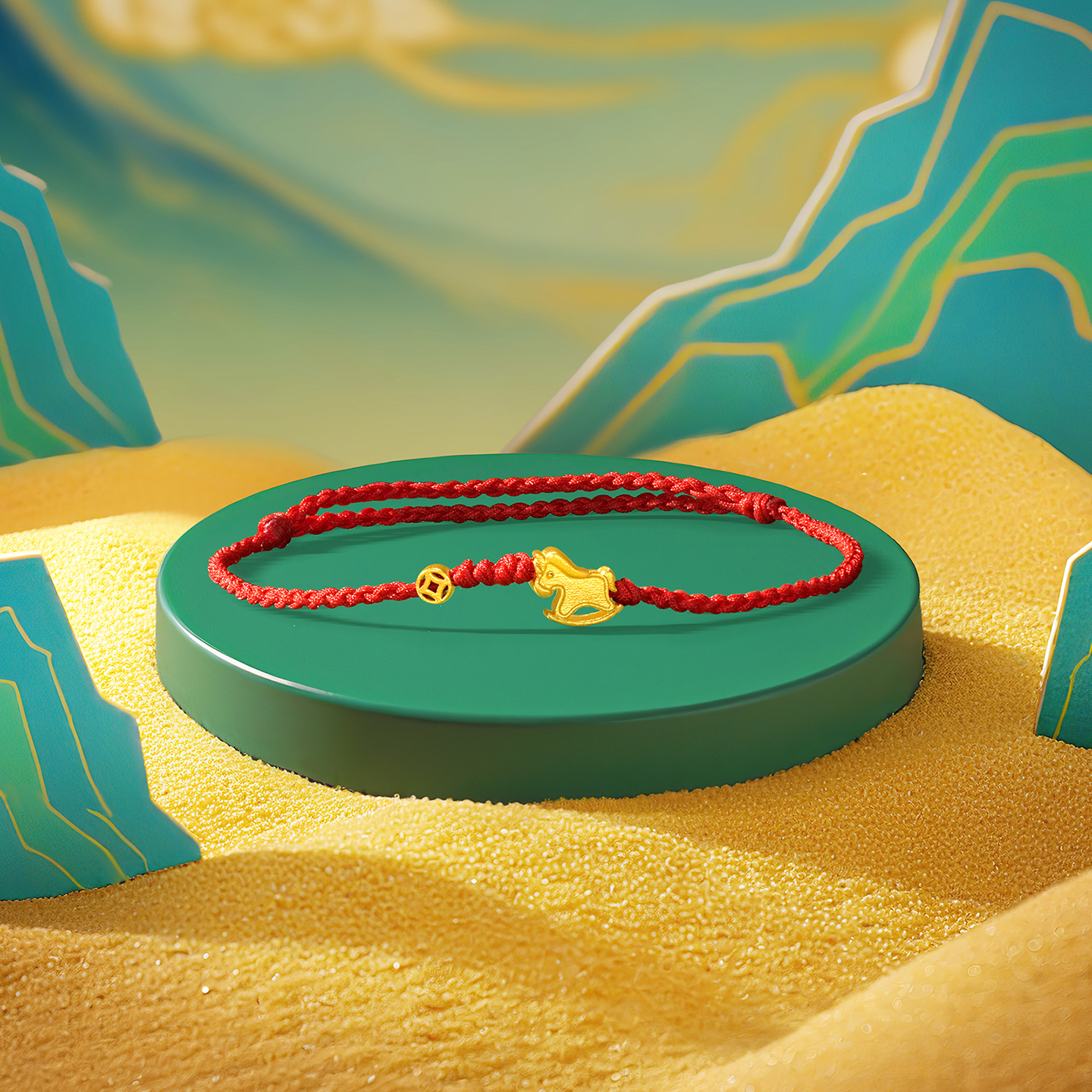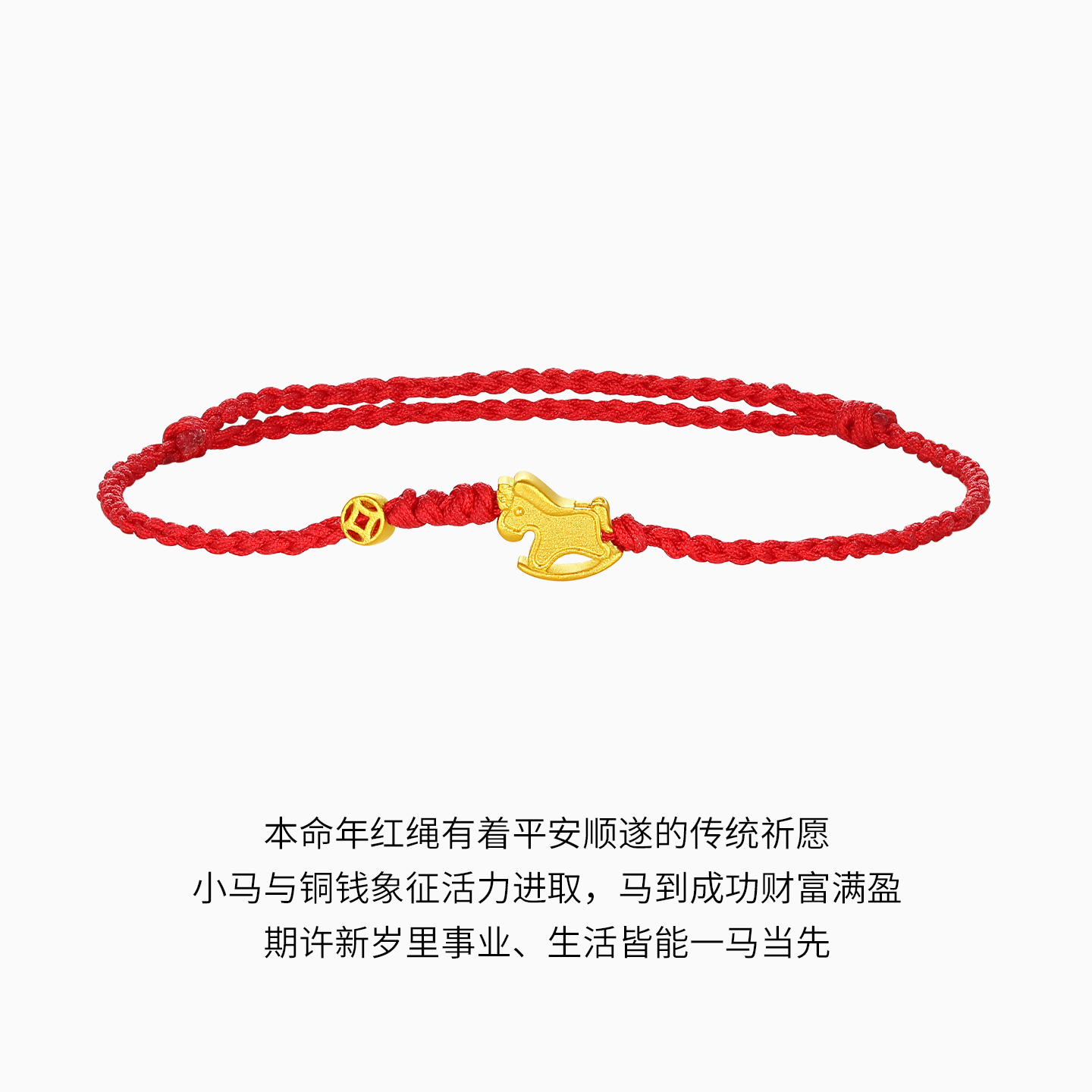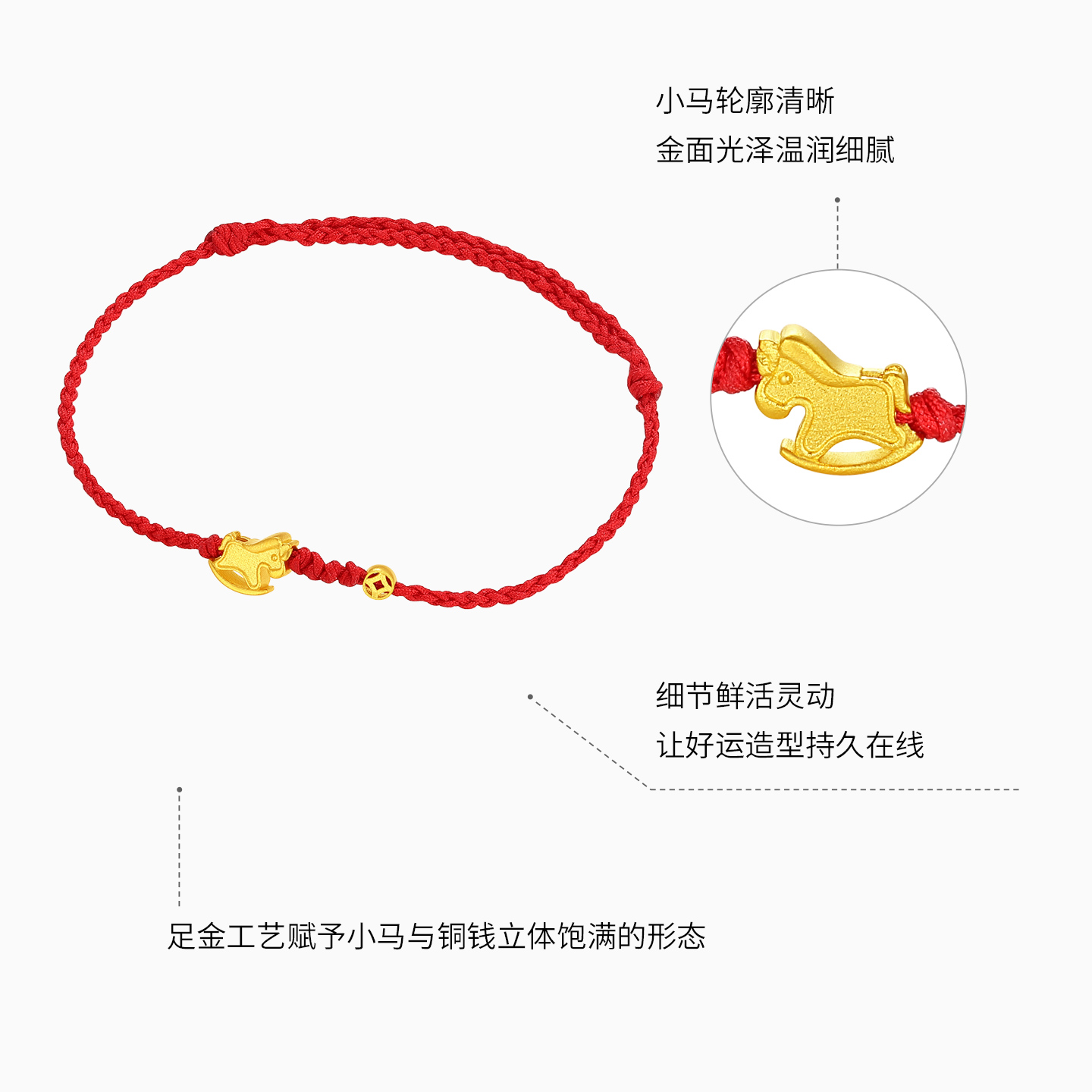 潮宏基好事发生黄金手链足金手绳手饰生肖马铜钱暴富本命年 计价