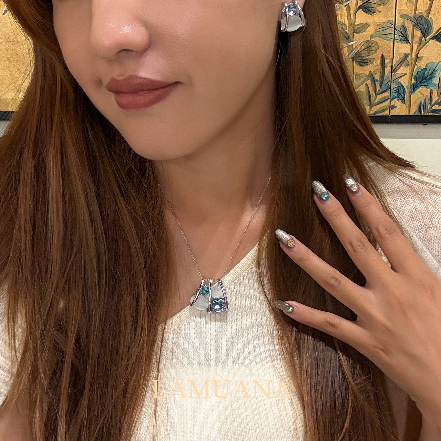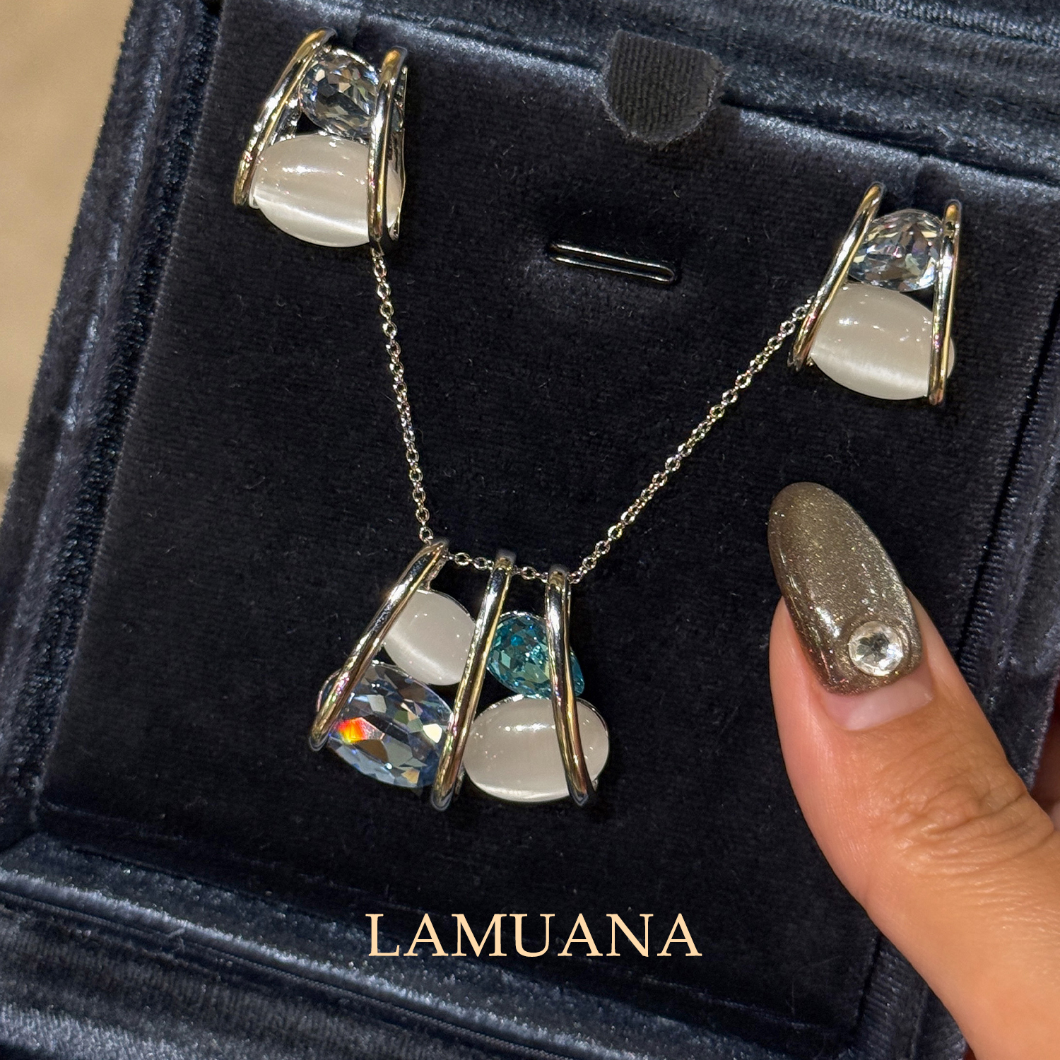 LAMUANA清冷系美人套装小众设计感复古小巧百搭金色彩钻项链耳钉