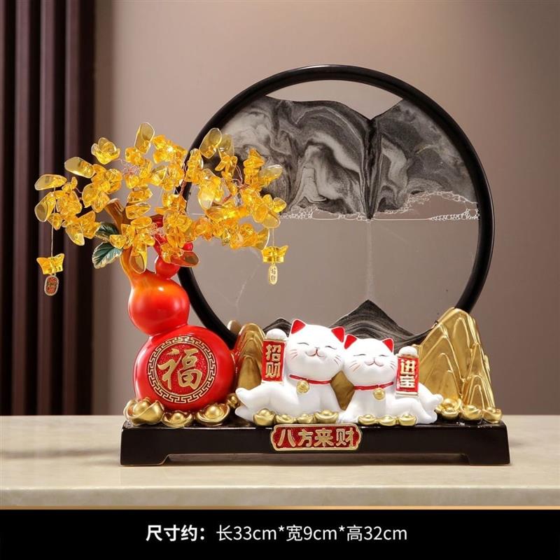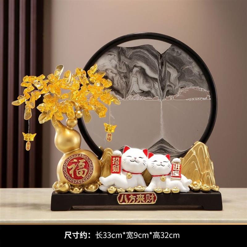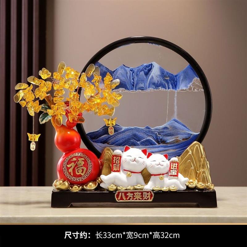 新中式葫芦发财树流沙画摆件家居客厅玄关饰品办公室乔迁开业礼物