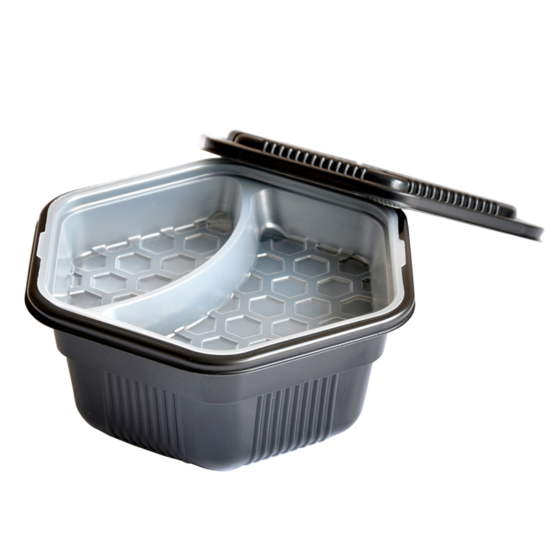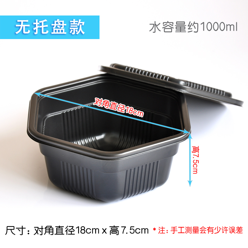 黑色双层快餐盒六角外卖一次性餐盒打包饭盒盖浇饭便当盒高档圆形