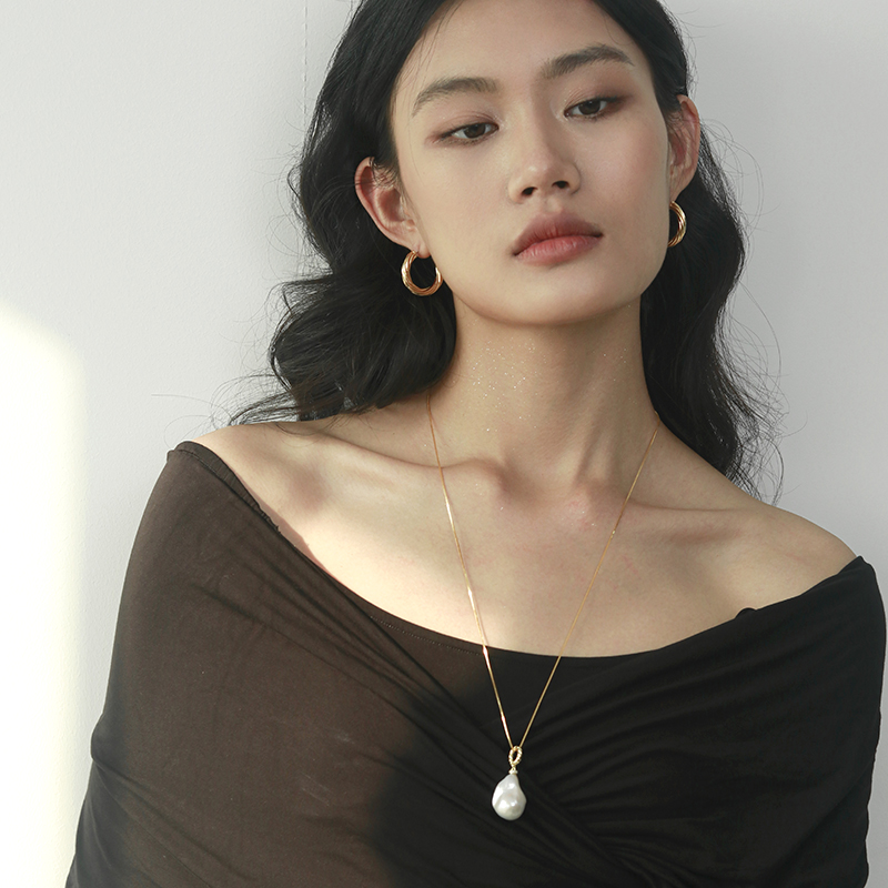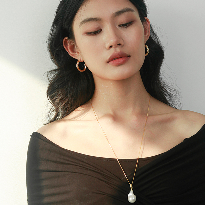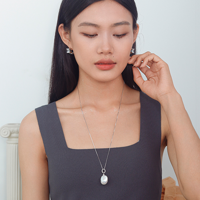Moment 天然巴洛克珍珠吊坠纯银长款项链毛衣链配饰颈链轻奢小众