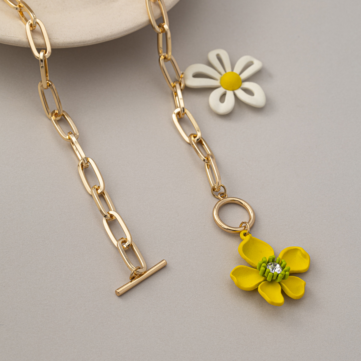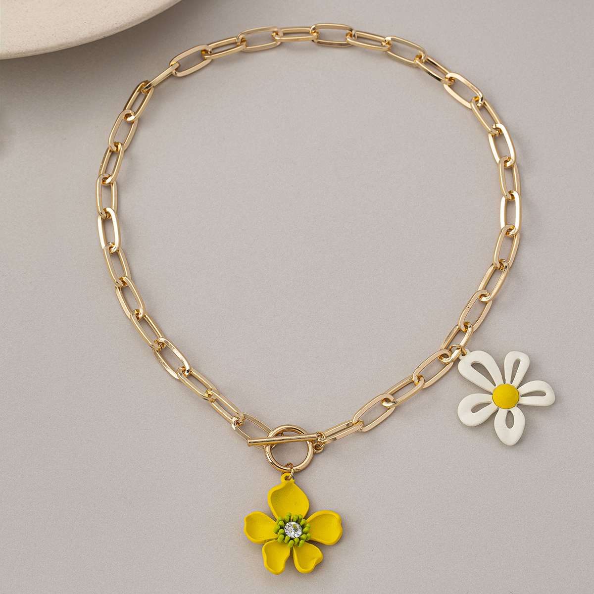 黄白色花朵吊项链女 坠时尚个性简约百搭小众设计感高级轻奢气质