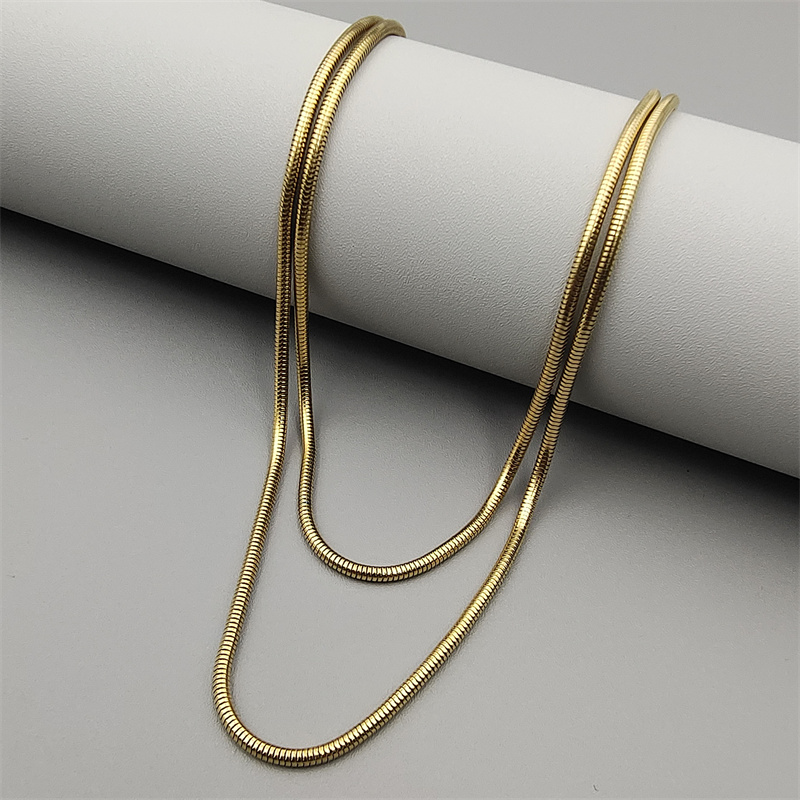 超长款金色蛇骨链钛钢叠戴项链个性女士百搭圆蛇毛衣链锁骨链时尚