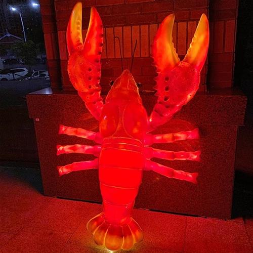 仿真发光小龙虾模型雕塑摆件玻璃钢螃蟹大排档门头招牌迎宾装饰品