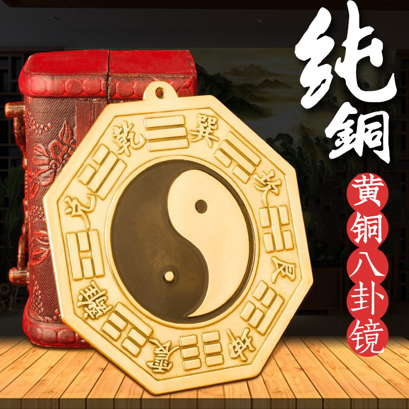 纯铜太极八卦镜乾坤太极图阴阳鱼凸镜小八卦镜平面镜家用门口摆件