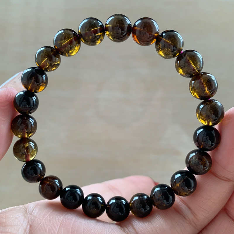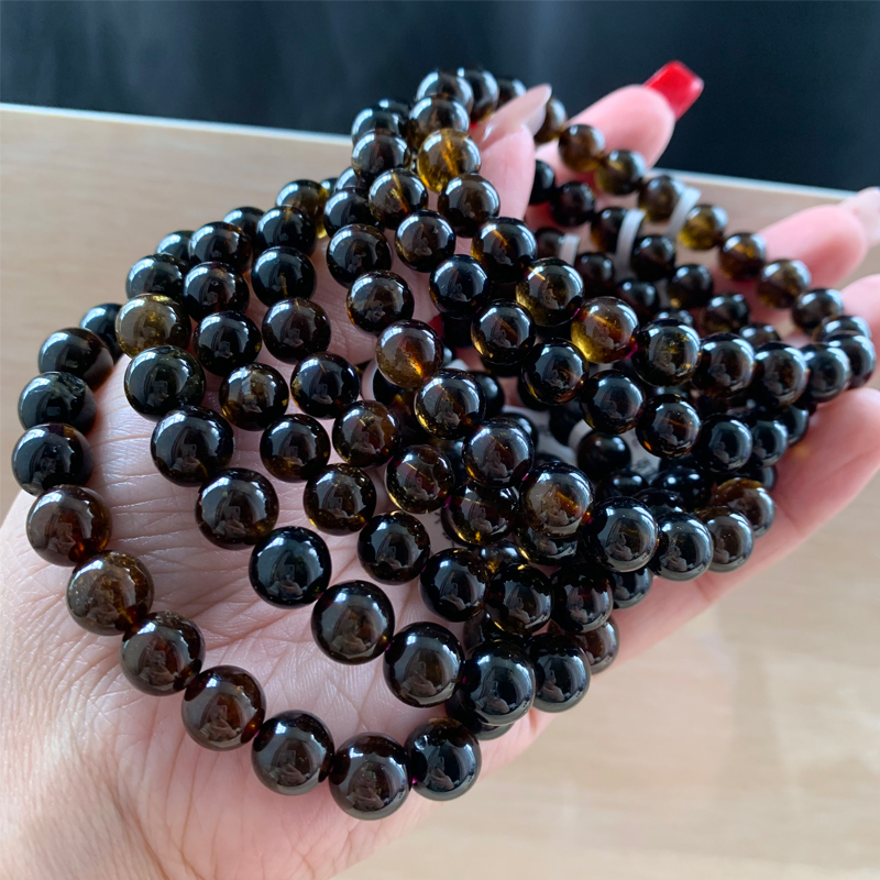 天然巴西黑糖黄碧玺单圈手链佛珠老矿碧玺手串项链一物一图礼物女
