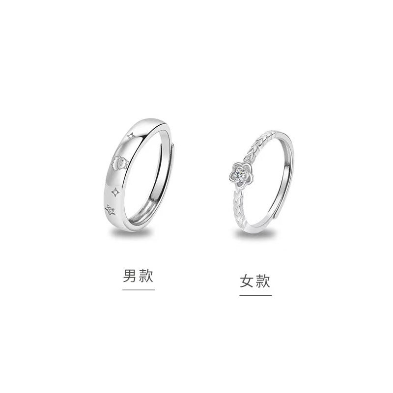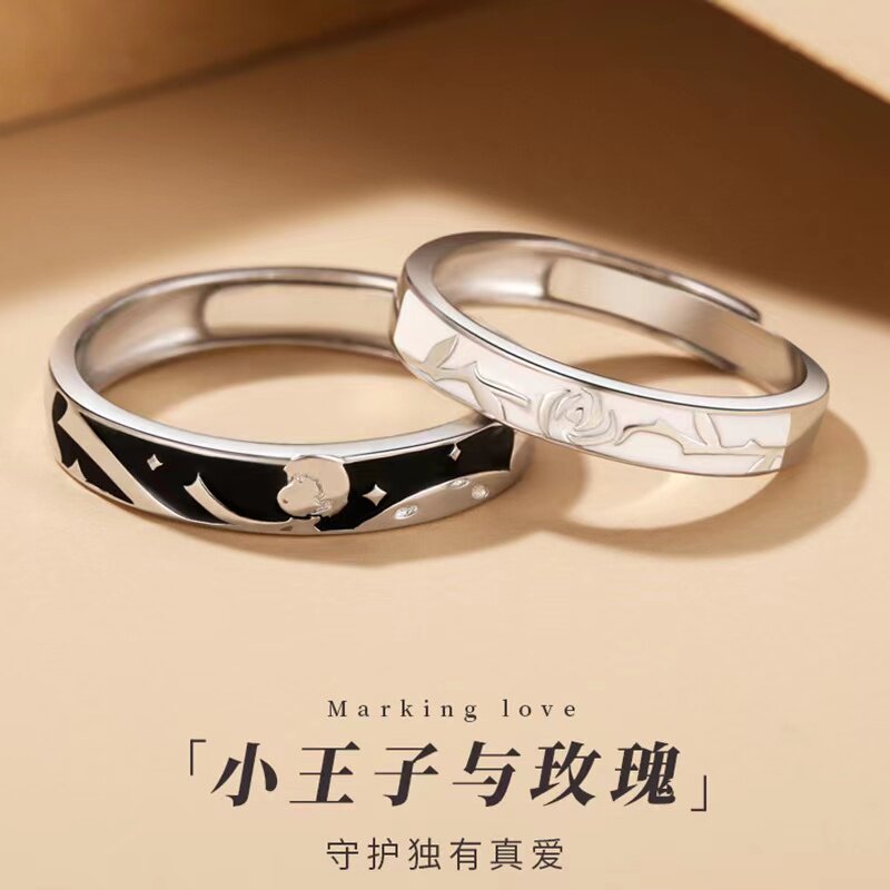 小王子与玫瑰纯银情侣戒指一对简约素圈男女学生异地恋开口对刻字