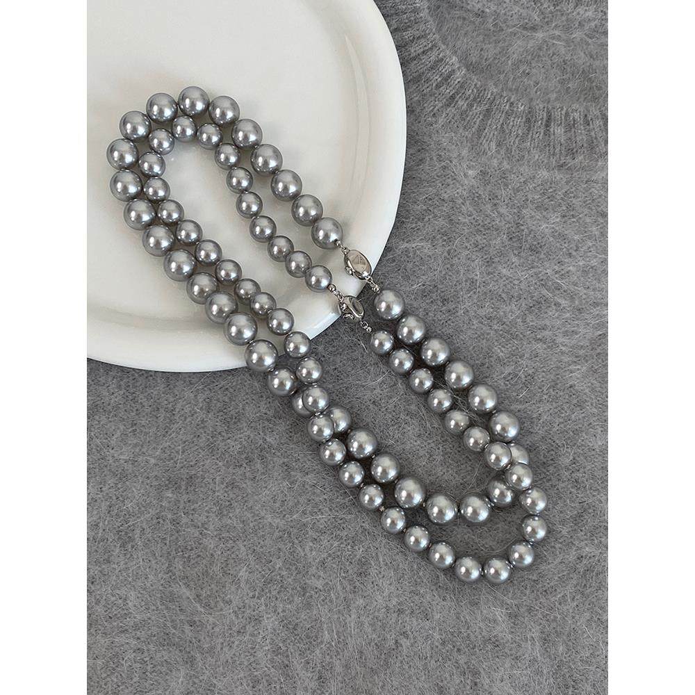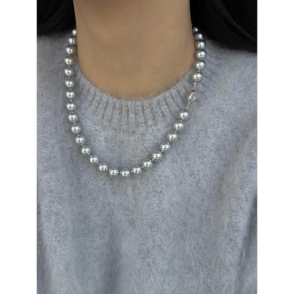 新加坡chomelkinsey灰色珍珠项炼女款2025新款秋冬大颗覆古锁骨炼