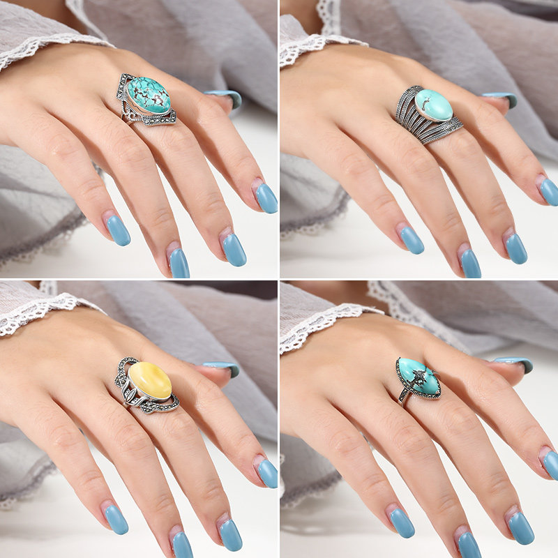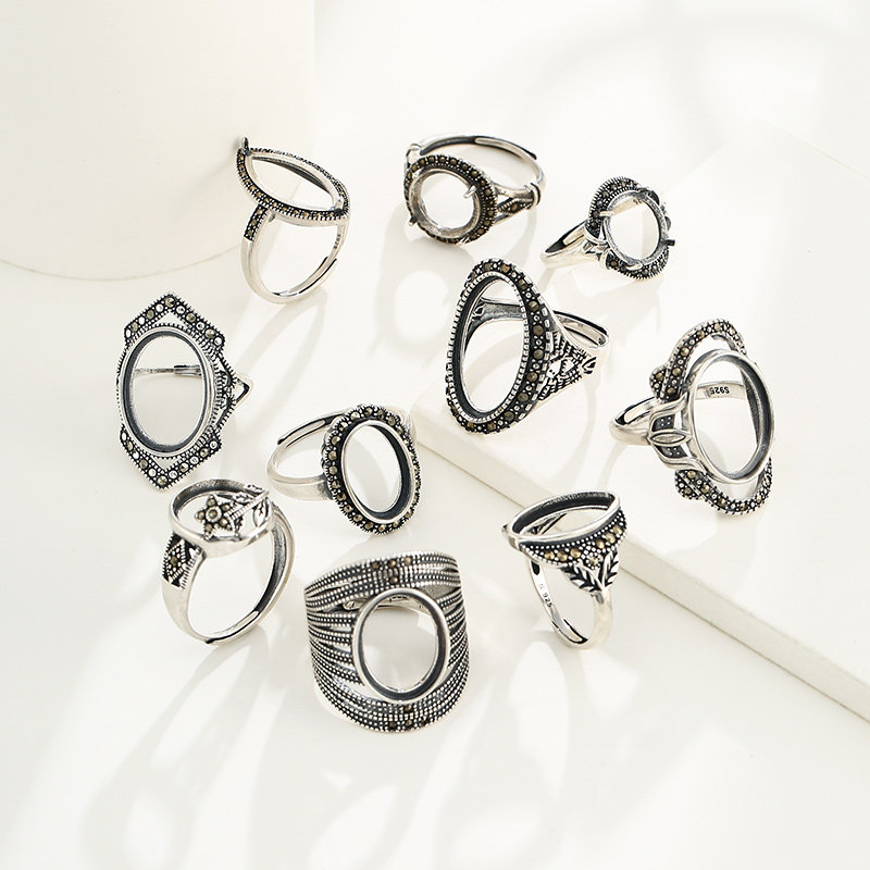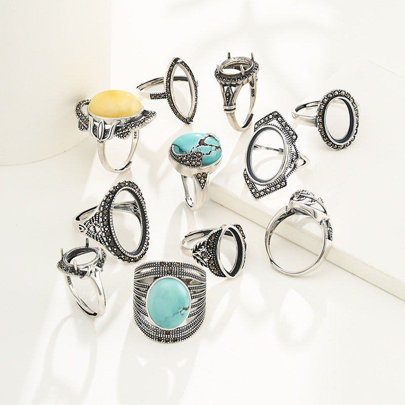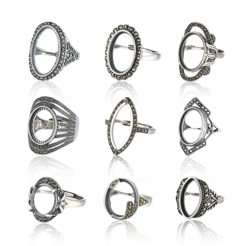 复古霸气纯银戒指空托男女8*16翡翠蜜蜡戒指托空托10*12*16 13*18