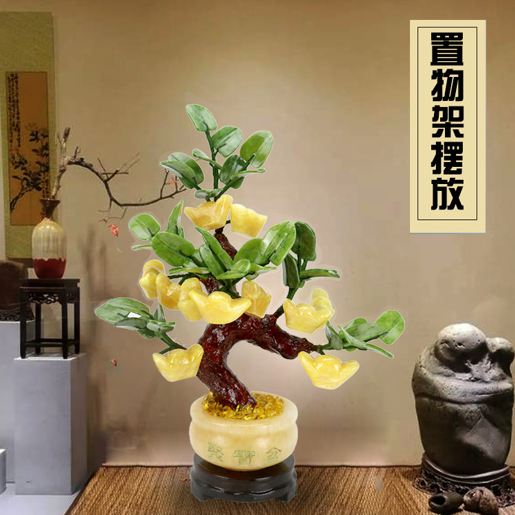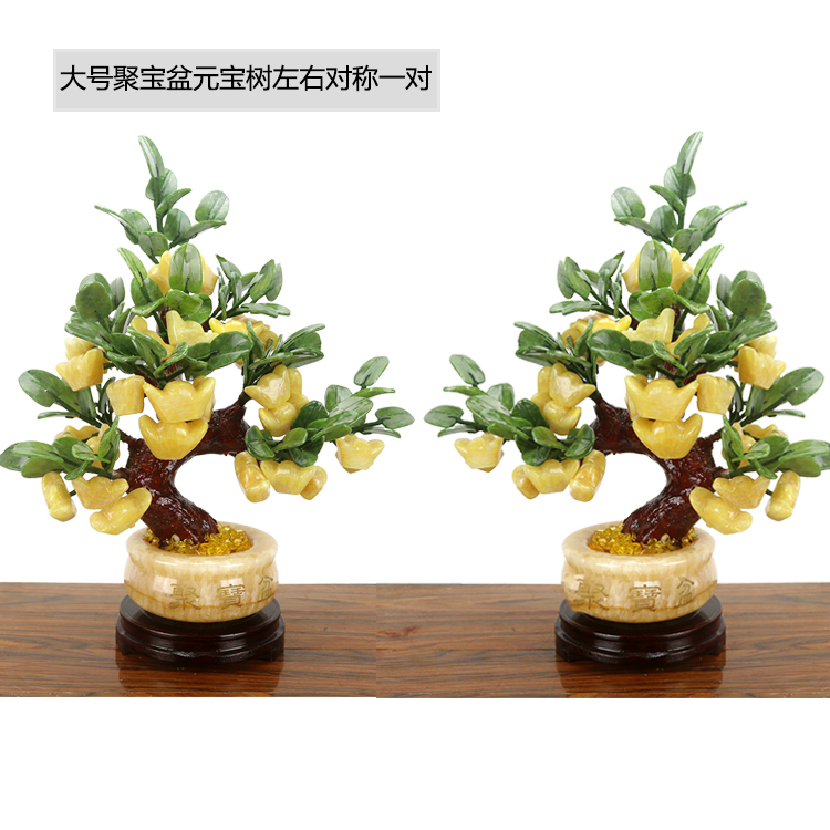 天然玉石聚宝盆摇钱树发财树摆件招财纳财客厅装饰酒柜电视柜摆件