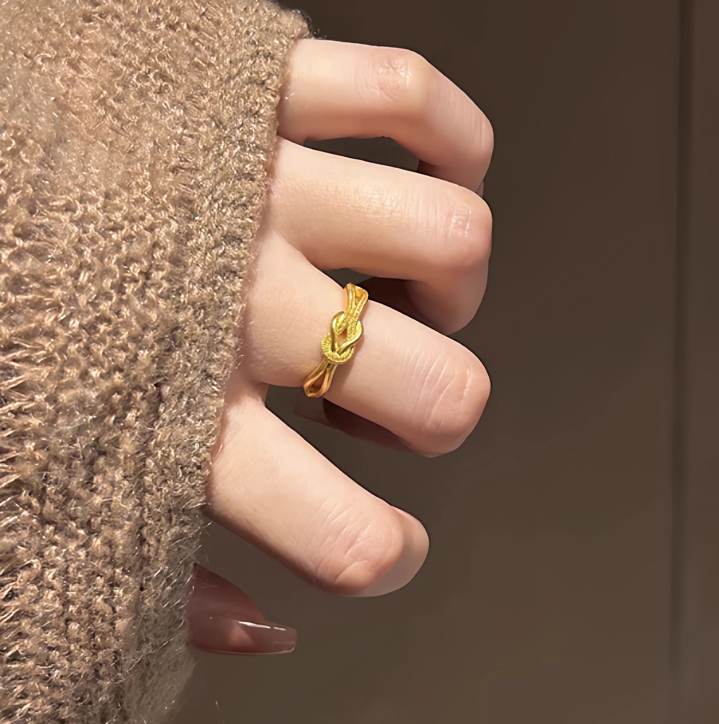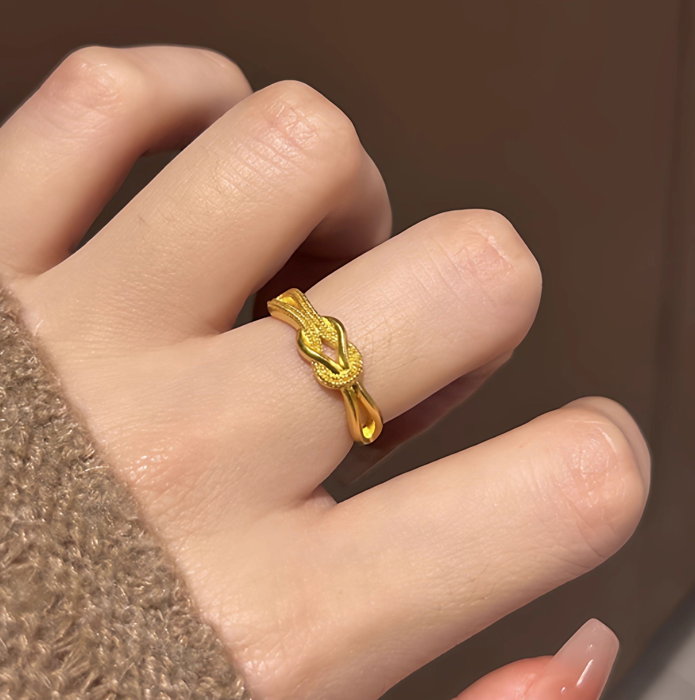 SMGI/首饰设计感同心结金戒指金包银喜结连理指环开口可调节饰品