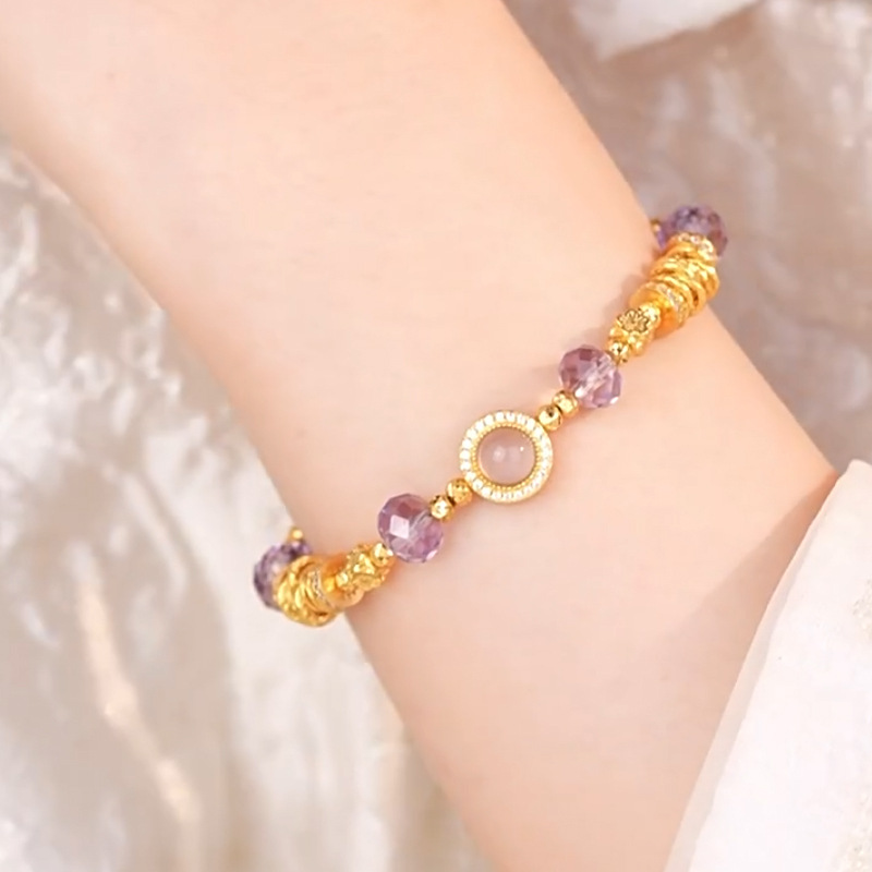 紫色星辰盘缠手链轻奢高级感天然紫水晶手串女新中式气质串珠手饰