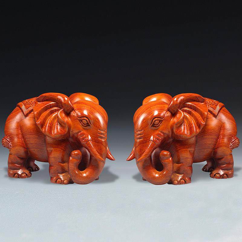 花梨木雕吸水大象一对实木摆件家居客厅电视柜装饰工艺礼品摆饰乔