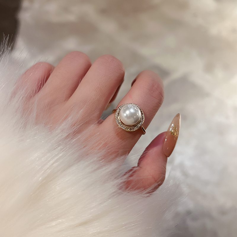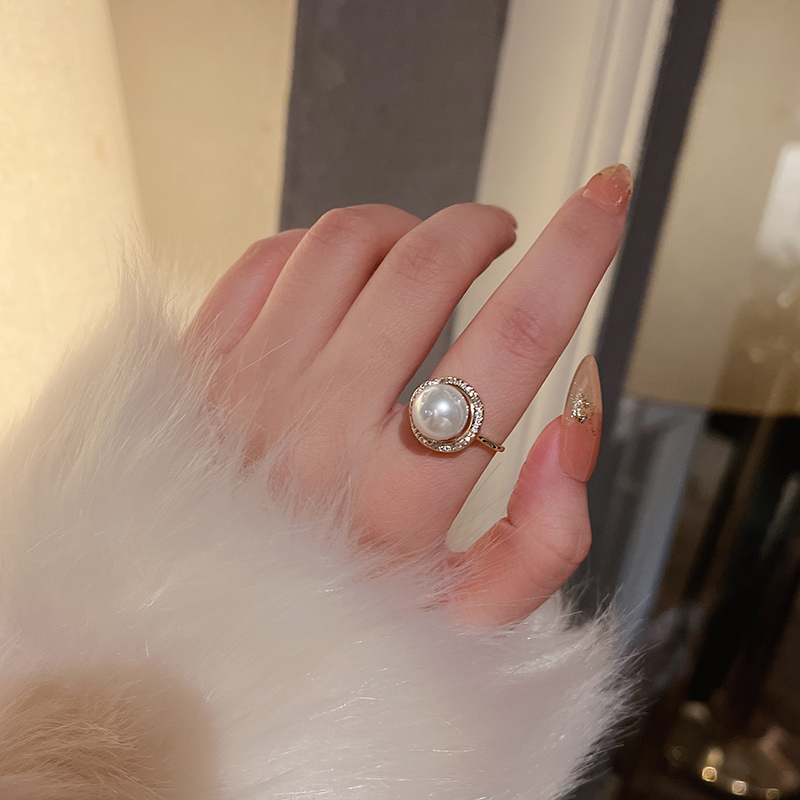 珍珠锆石戒指 韩国ins时尚个性设计气质高级感镶钻开口食指环戒子