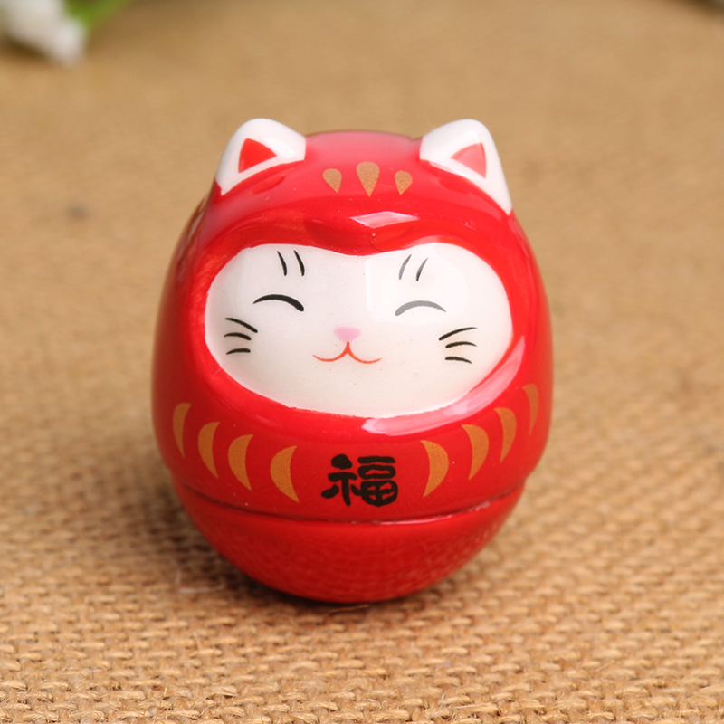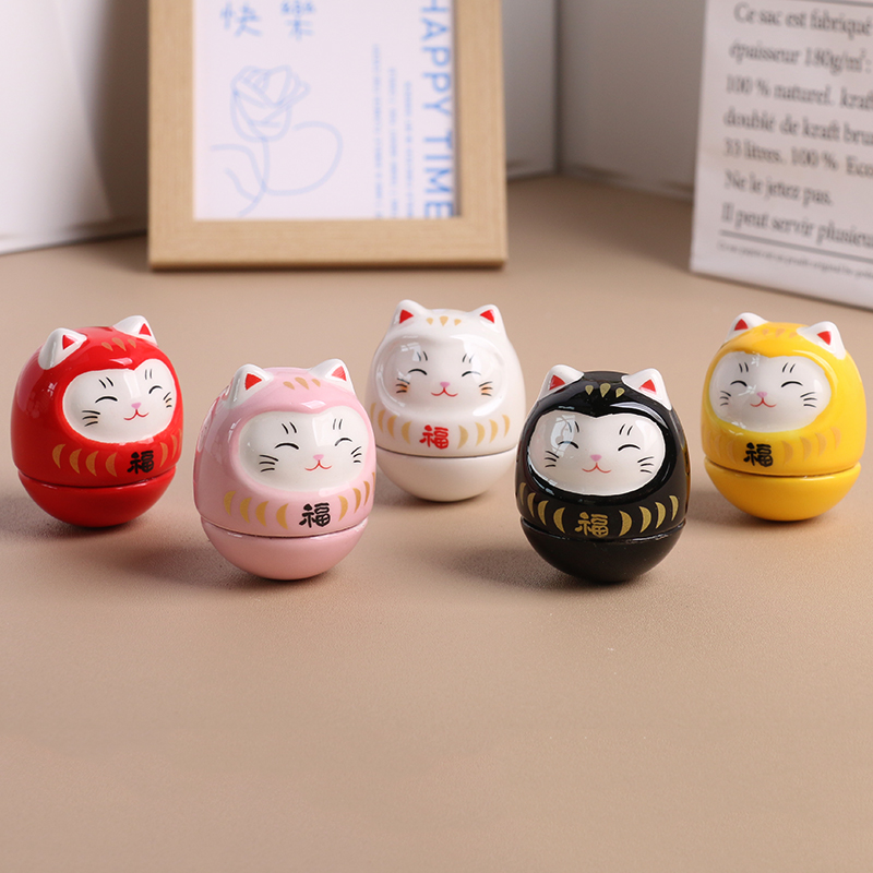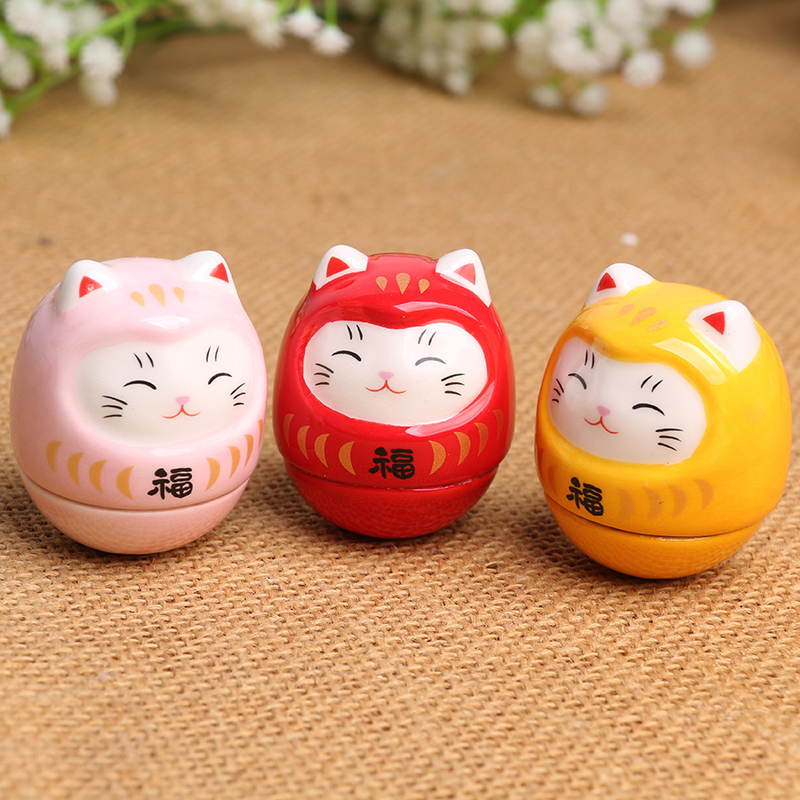 创意陶瓷招财猫小玩意摆件不倒翁玩具可爱猫咪饰品房间装饰礼物