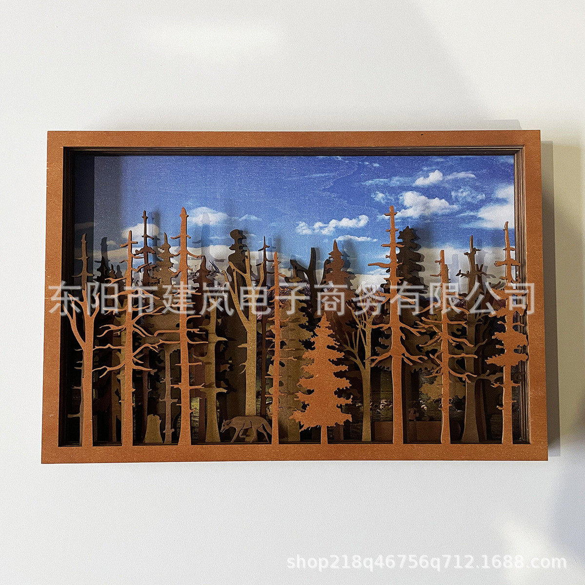 室内墙装饰品居家墙饰餐厅火炉边圣诞树壁挂木质画墙壁木制品挂件