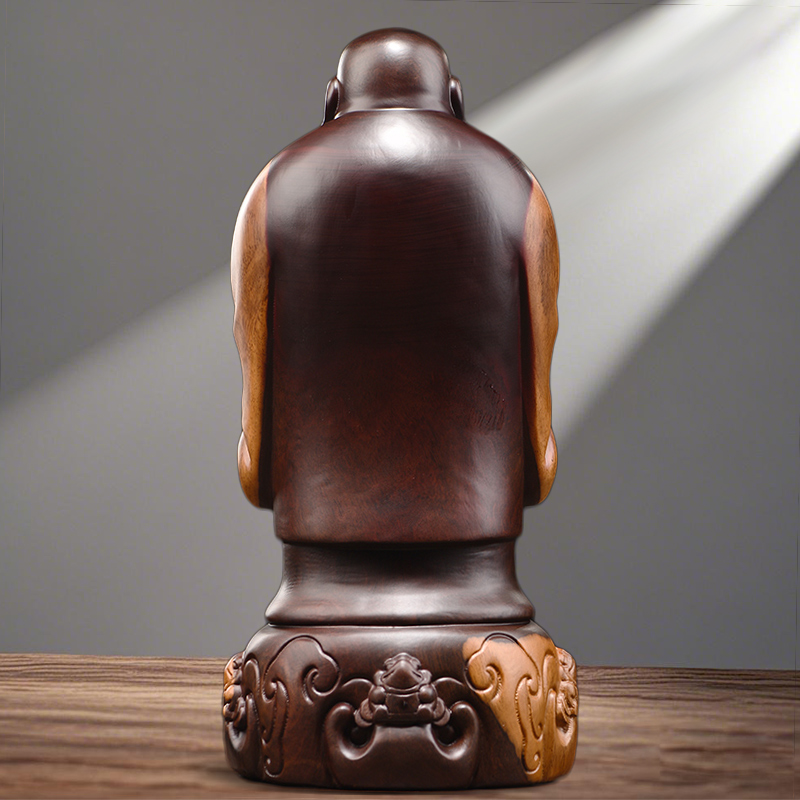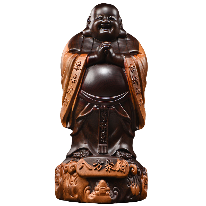 黑檀木雕弥勒佛摆件纯实木制八方笑佛像工艺品红木家居玄关送礼品