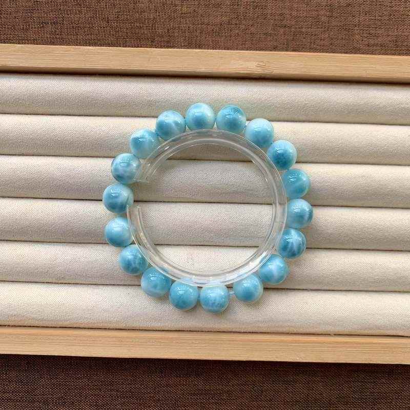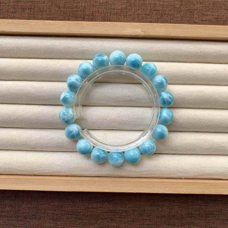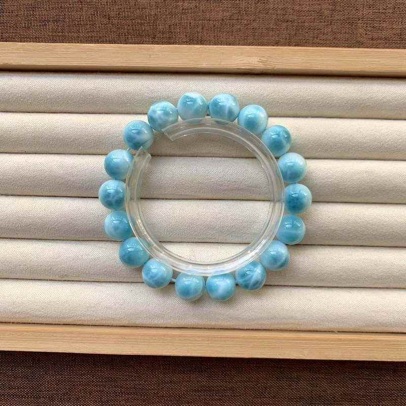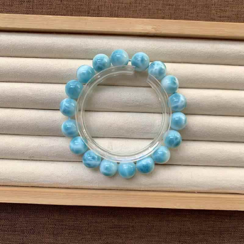 天然多米尼加海纹石手链男女款单圈拉利玛圆珠手串珠链规格11.4mm