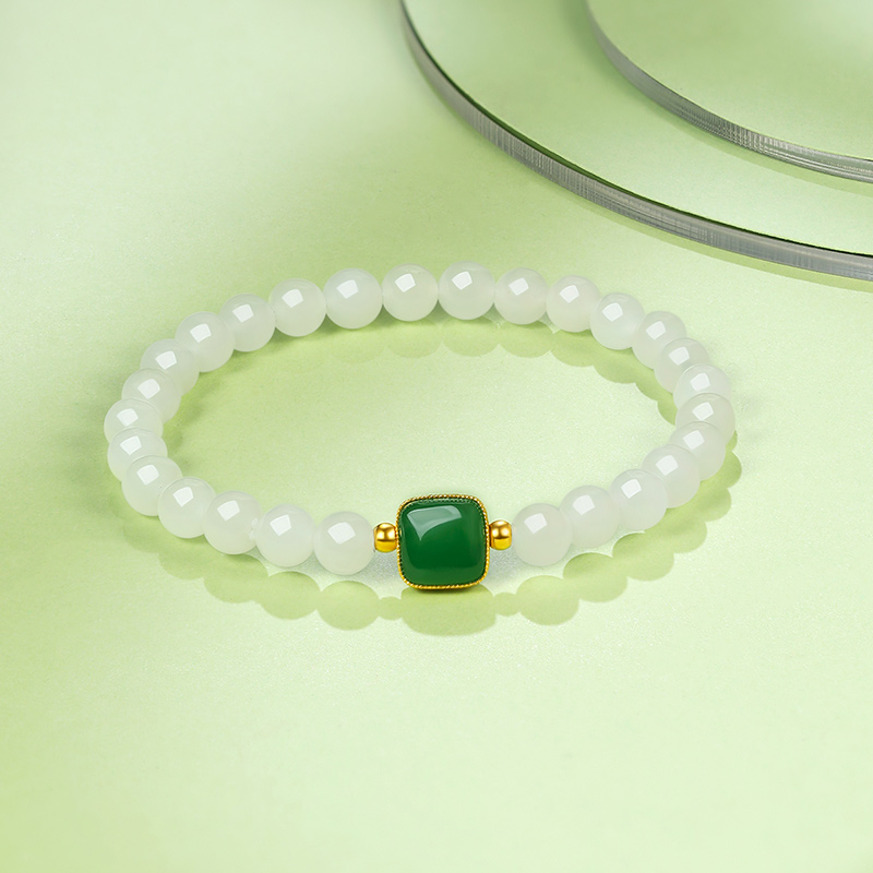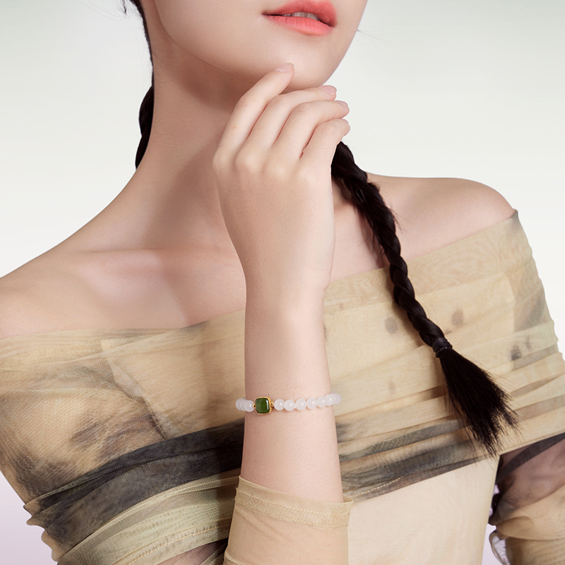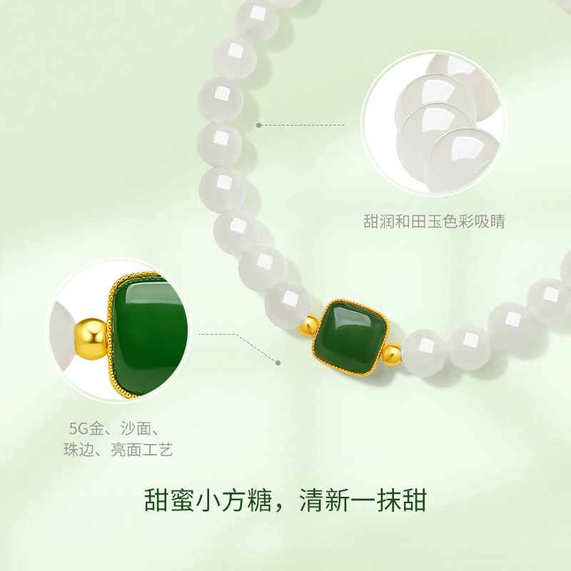 周六福和田玉手串女款黄金玉石甜馨方糖手链官方旗舰店节日礼物