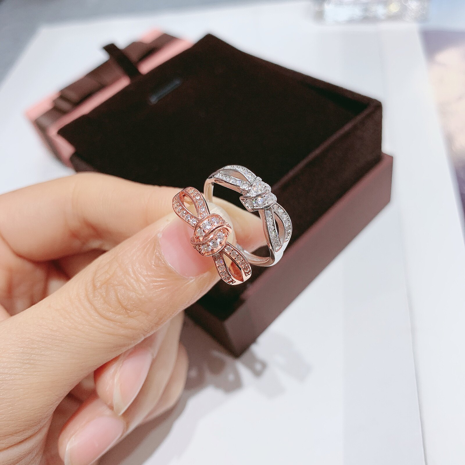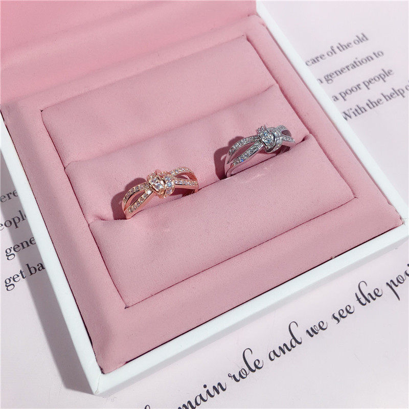 PT950铂金蝴蝶结戒指镶嵌美国进口莫桑石指环满钻群镶玫瑰金指环