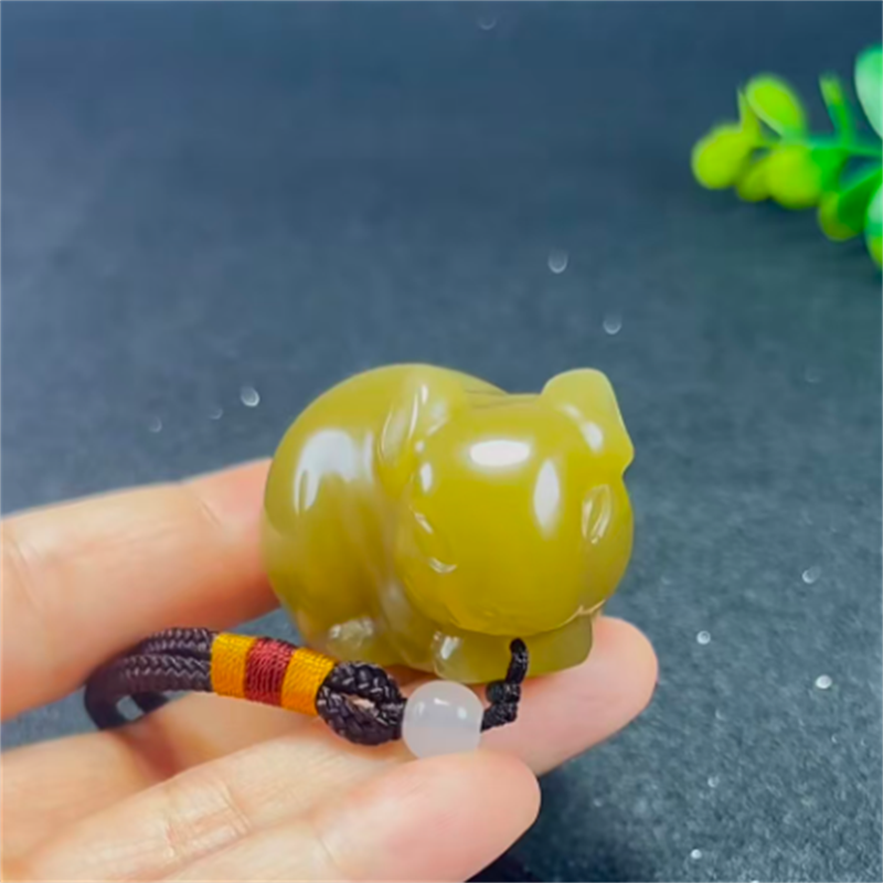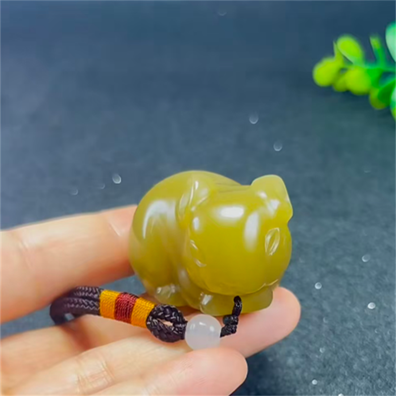 天然新疆和田玉糖玉招财玉鼠手把件十二生肖鼠把玩件玉石老鼠挂件