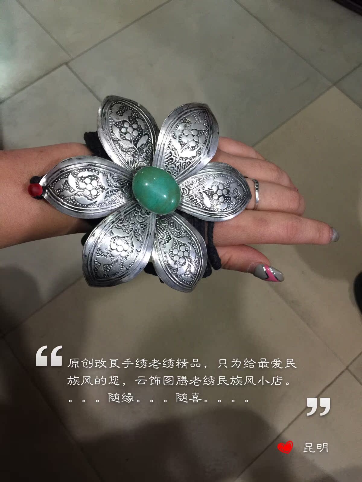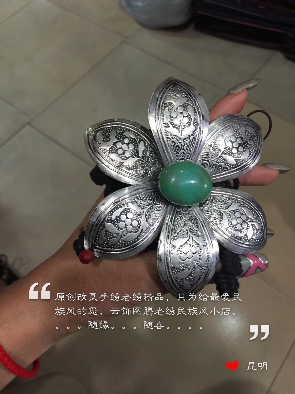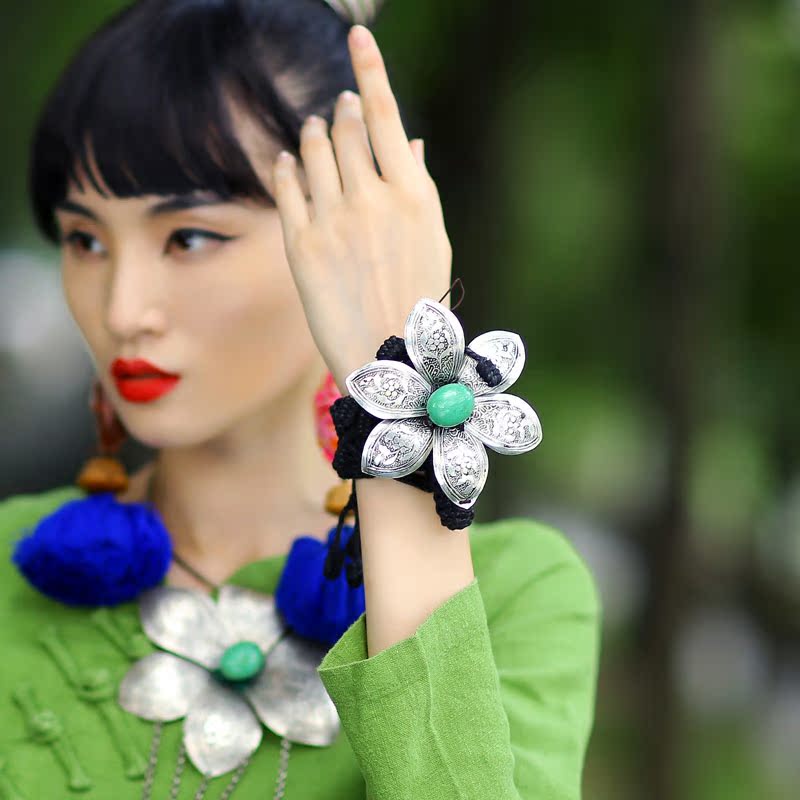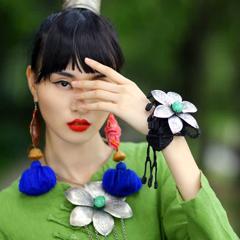 云饰图腾原创手作女饰品手链镯子民族风饰品手镯手工麻线苗银莲花