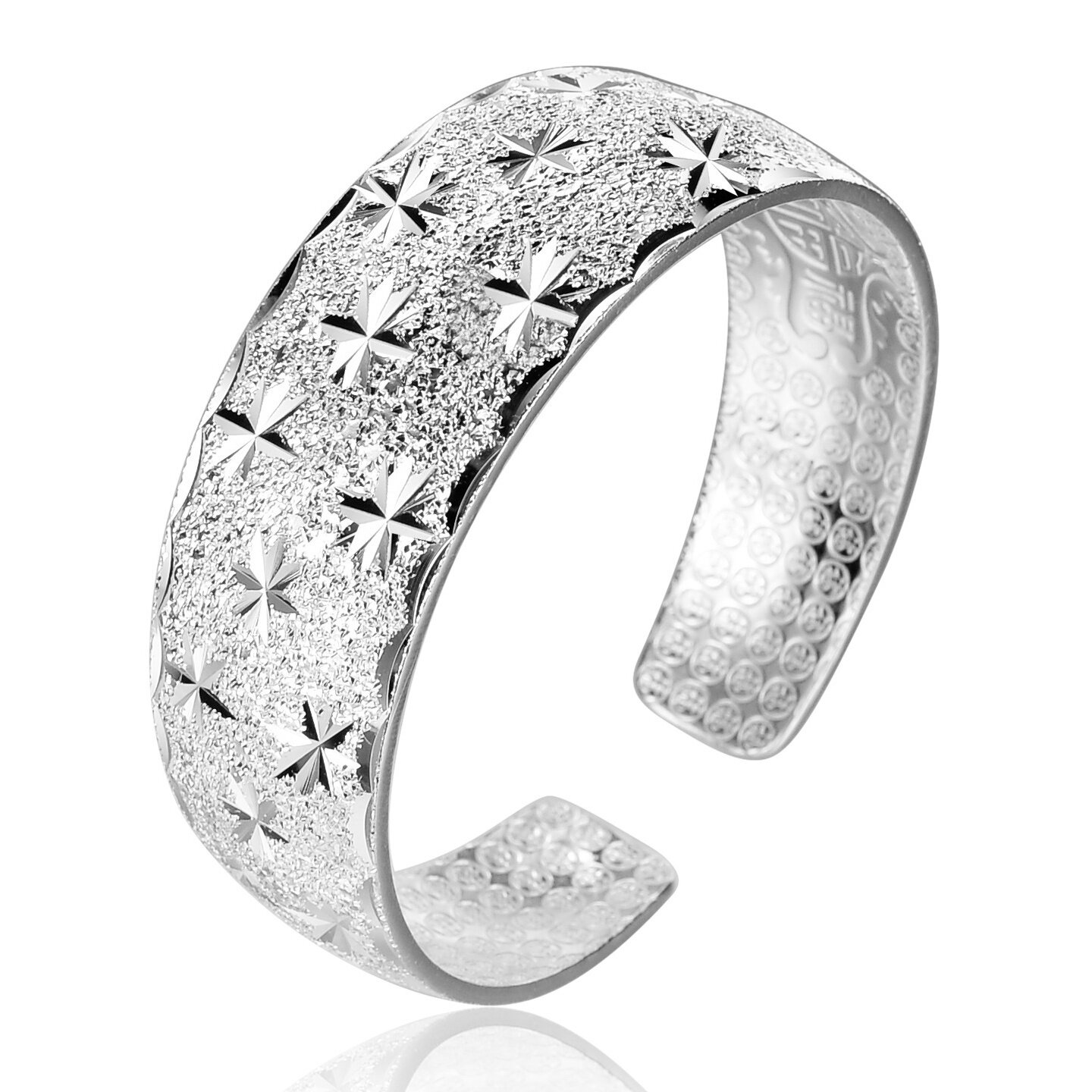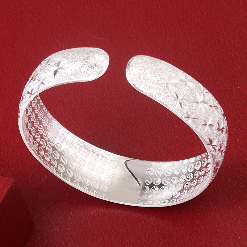 中古风宽面满天星开口手镯女款万福推拉送女友送妈妈礼物跨境批发